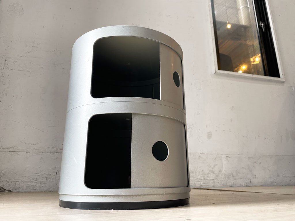 カルテル Kartell コンポニビリ 2段 シルバー アンナ・カステッリ・フェリエーリ ストレージボックス イタリア ミッドセンチュリー 参考定価 \20,100- ★