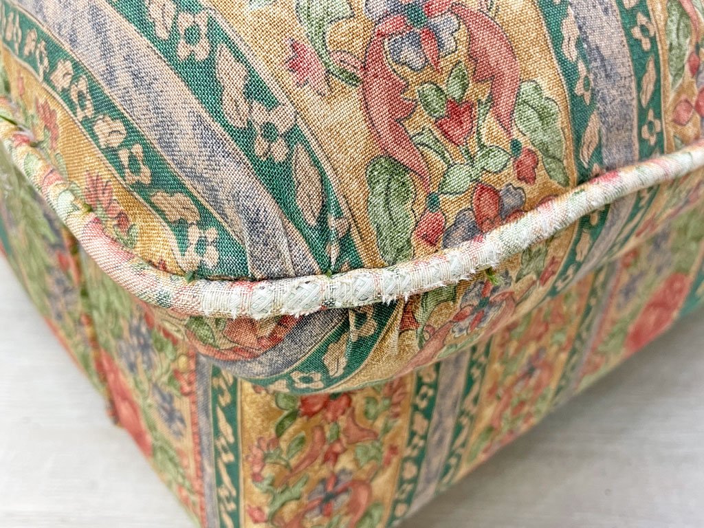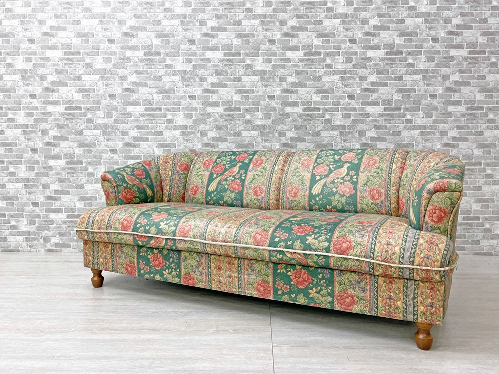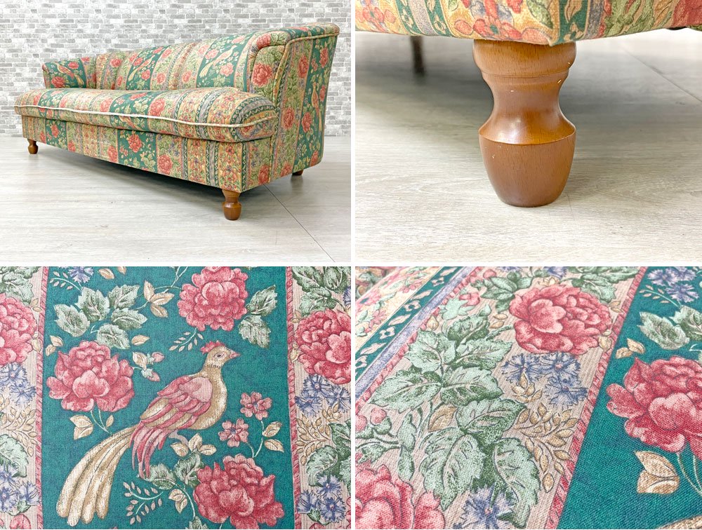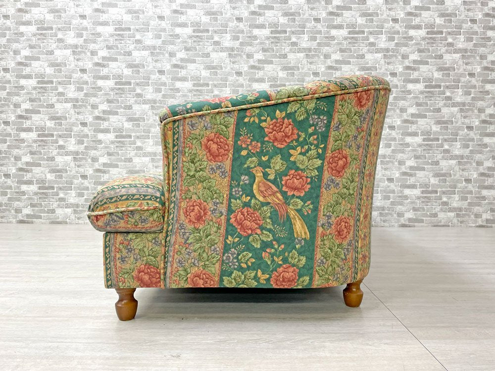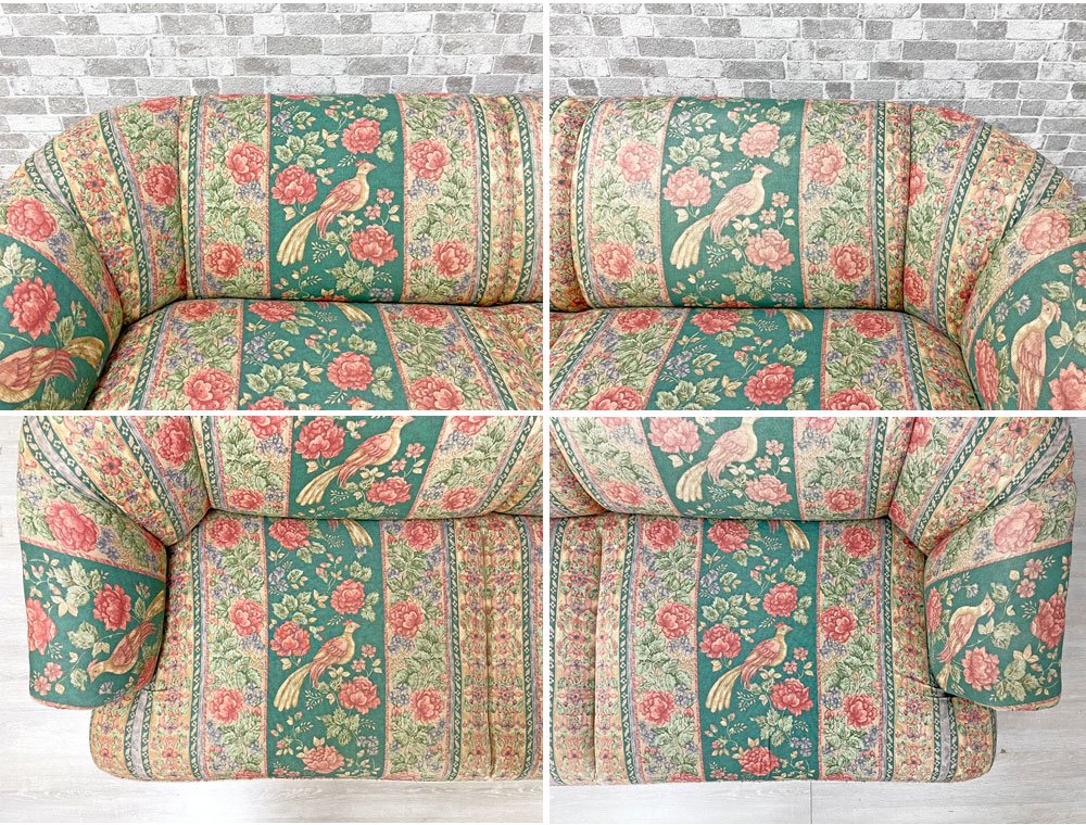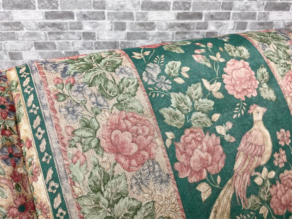 鳥等が描かれたインパクトのあるボタニカル柄は、経年により程よく落ち着きのある色合いへと変化しており、派手な柄でありながらいやらしさを感じさせません。