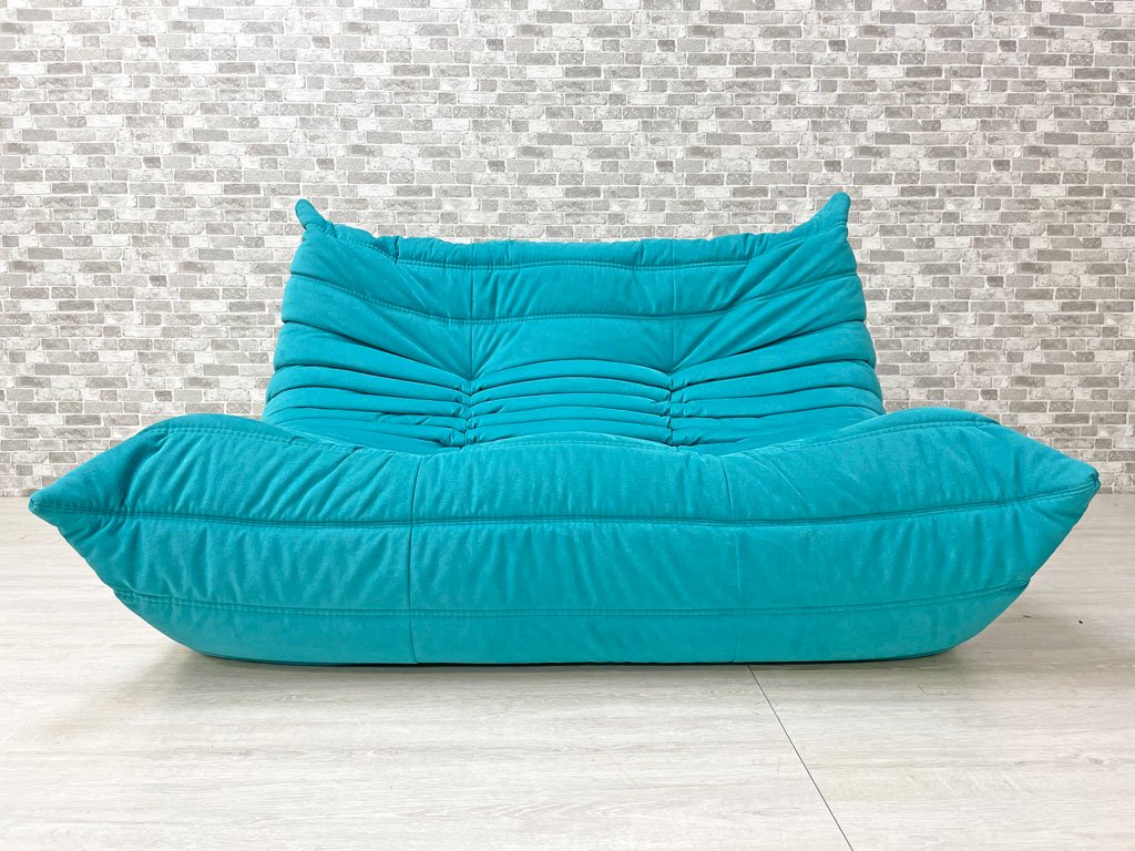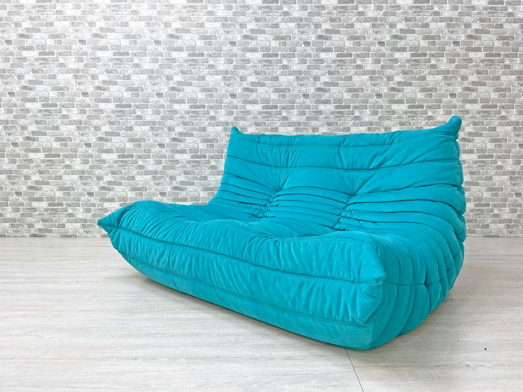 リーンロゼ ligne roset トーゴ TOGO ソファ 2人掛け ファブリック サウスビーチ ミッシェル・デュカロワ フランス 定価:385,000円 美品 ●