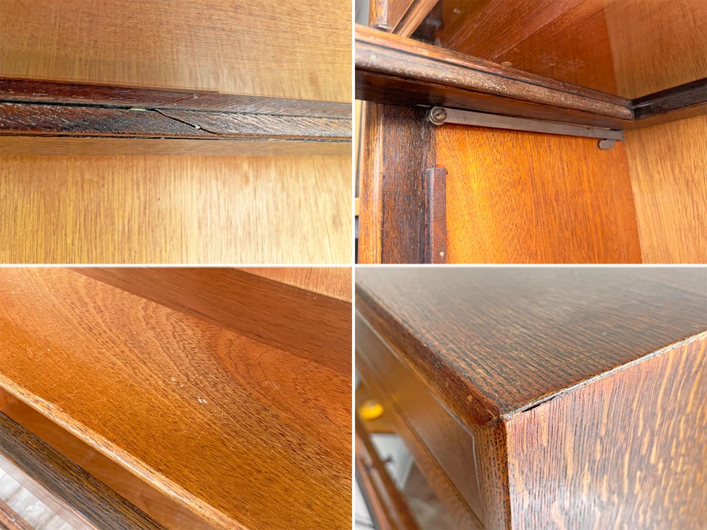 UKビンテージ UK Vintage スタッキングブックケース オーク材×マホガニー材 ガラスキャビネット ディスプレイケース フラップ扉 英国家具 ♪