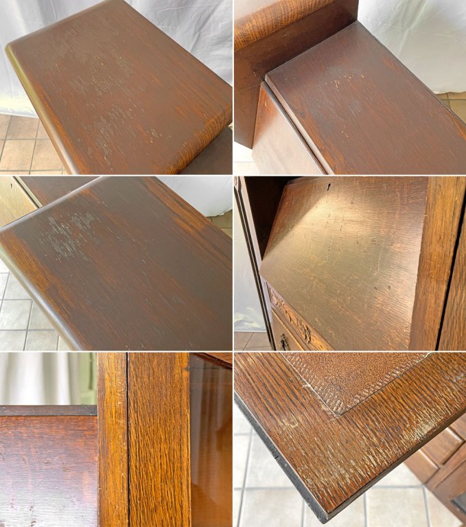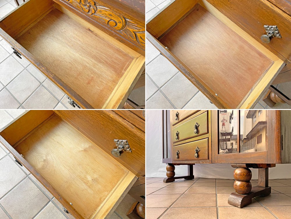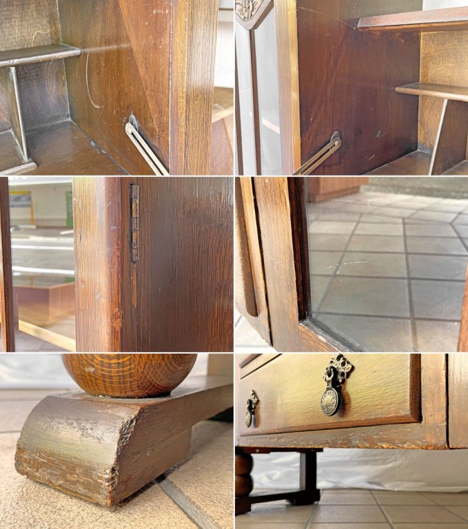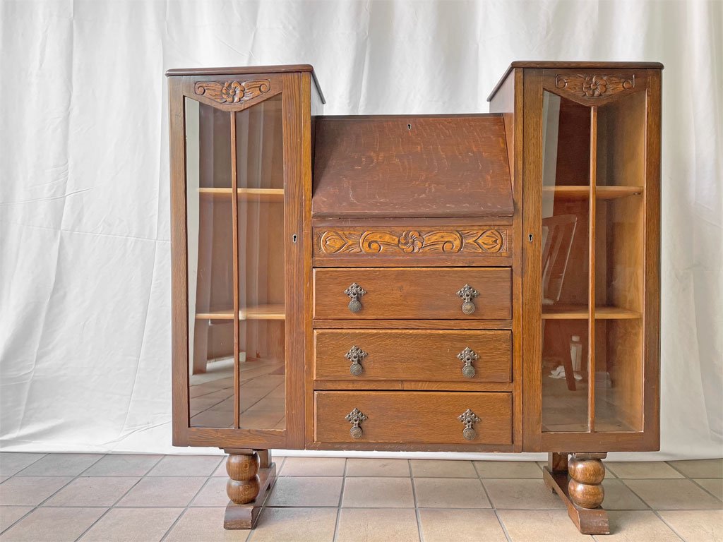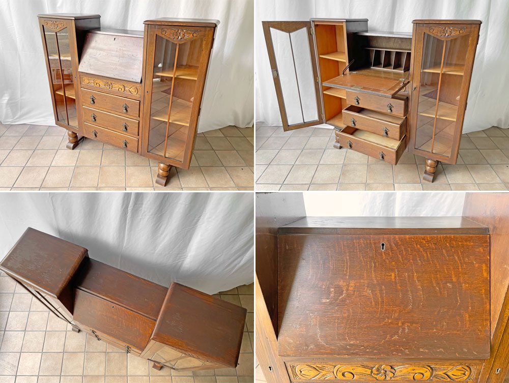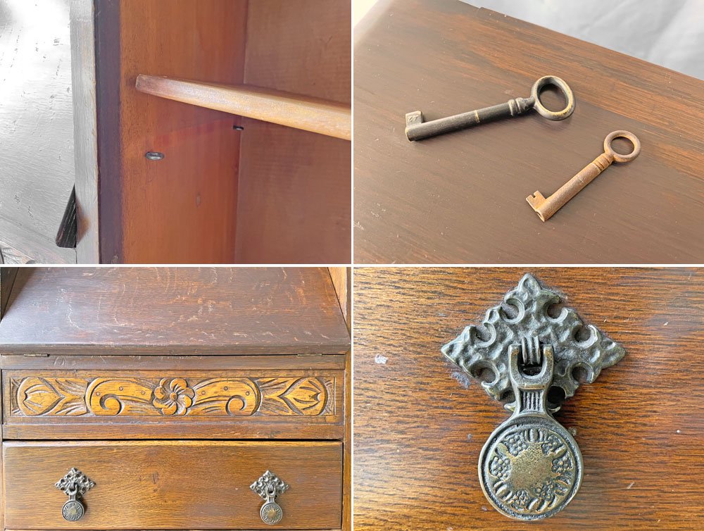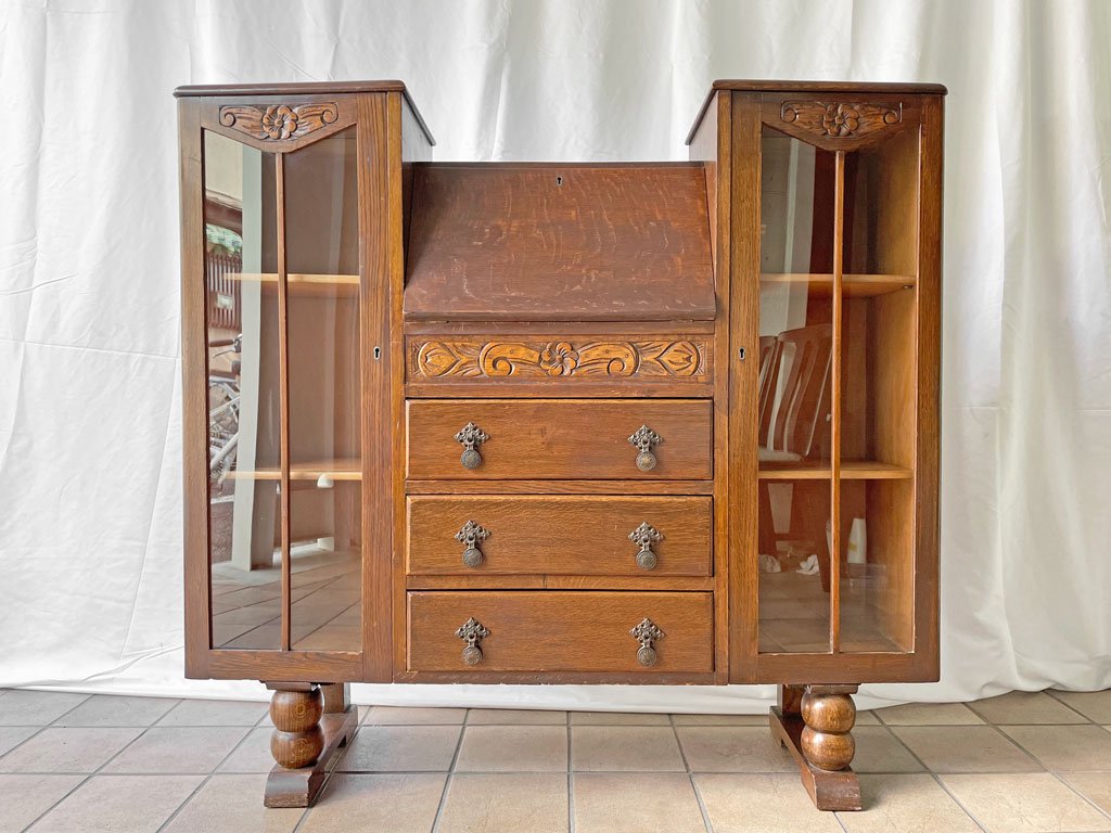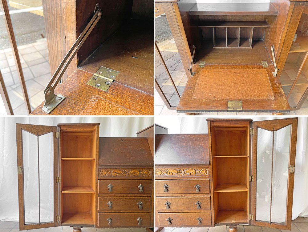 UK ビンテージ vintage ライティングビューロー ガラスキャビネット オーク材 サイドバイサイド 鍵2本付属 英国 ◇