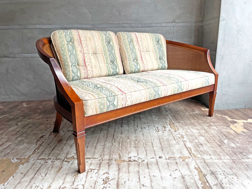 今回入荷したニースソファは、アーム部分のラタンが抜け感を演出し、どこか涼し気な雰囲気も感じさせます。