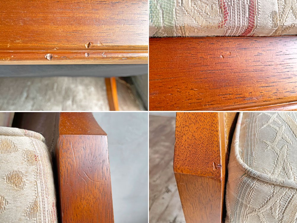 木材フレームの複数の傷や打痕、ファブリックの色褪せや微かな解れが見受けられます。その他、大きく目立つようなダメージは無く、USED品として概ね良好なコンディションを保っております。
