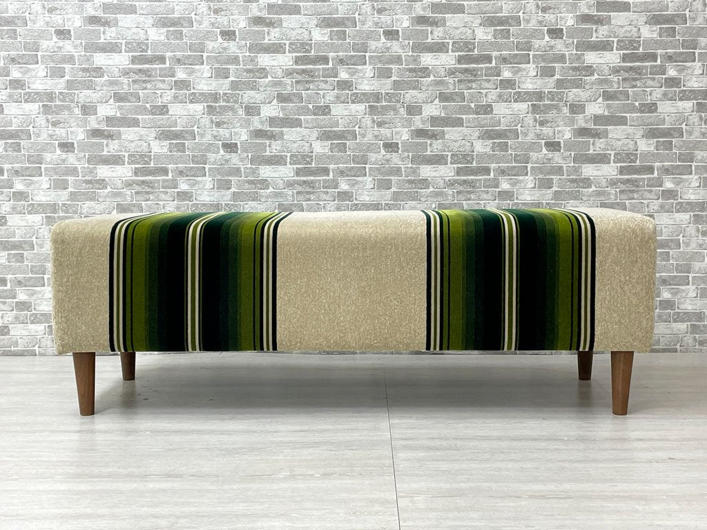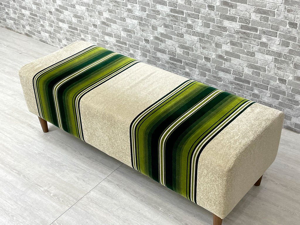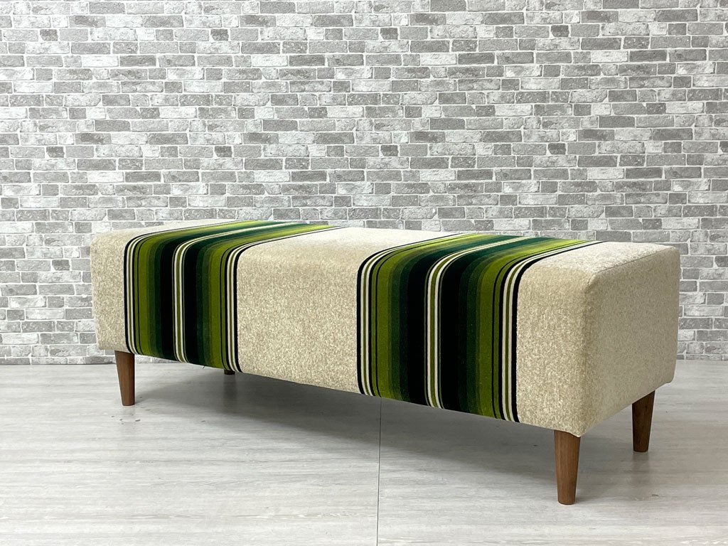 スウィッチ SWITCH 130 ベンチ 130 Bench F-30 グリーンストライプ BR丸脚 ウォールナット ミッドセンチュリーモダン 定価46,343円 ●