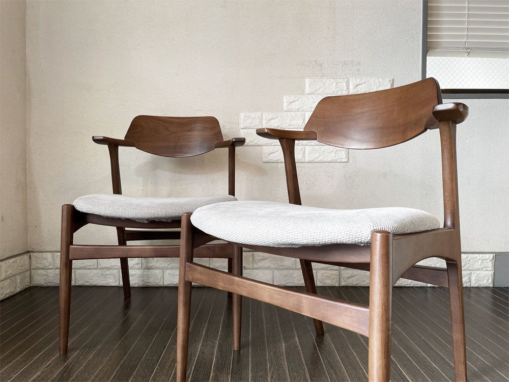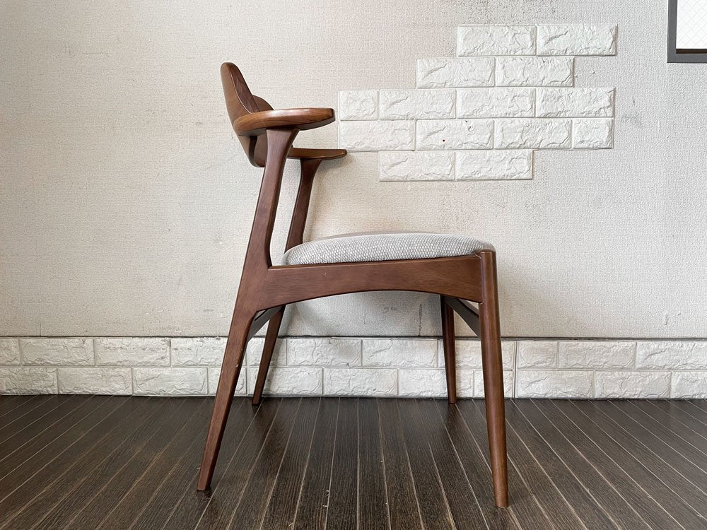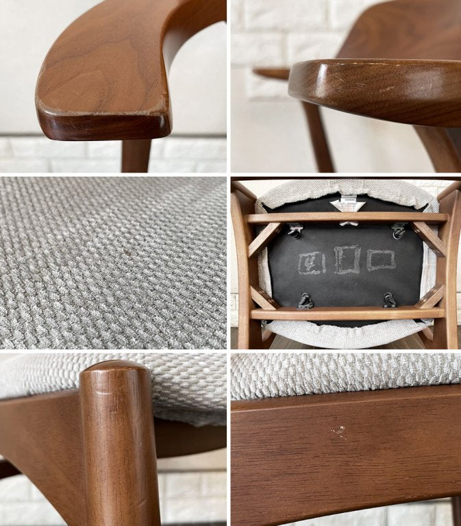 ケユカ KEYUCA カッセル Kassel アームチェア ダイニングチェア ハーフアーム ウォールナットフレーム ファブリック座面 グレー系 A ◎