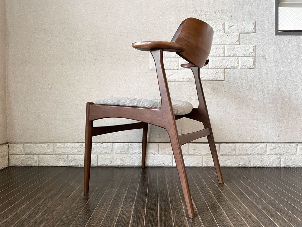 落ち着いた雰囲気のウォールナットフレームにグレー系のファブリックがスタイリッシュな雰囲気を醸し出す1脚。