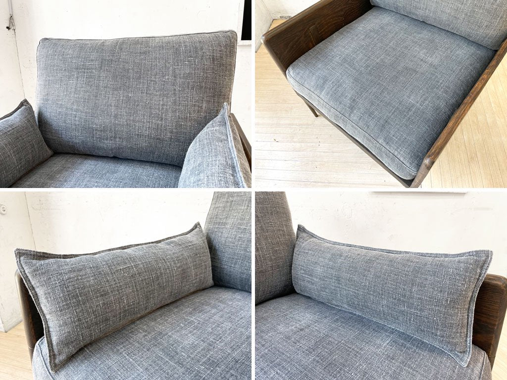 ファブリックに多少の毛羽立ち、座面クッション前面に若干のシミが見受けられます。また、フレームの傷や擦れ、色ムラなどがございますが、クッションのヘタリなども無く、大きく目立つようなダメージなどもございません。USED品として概ね良好なコンディションを保っております。