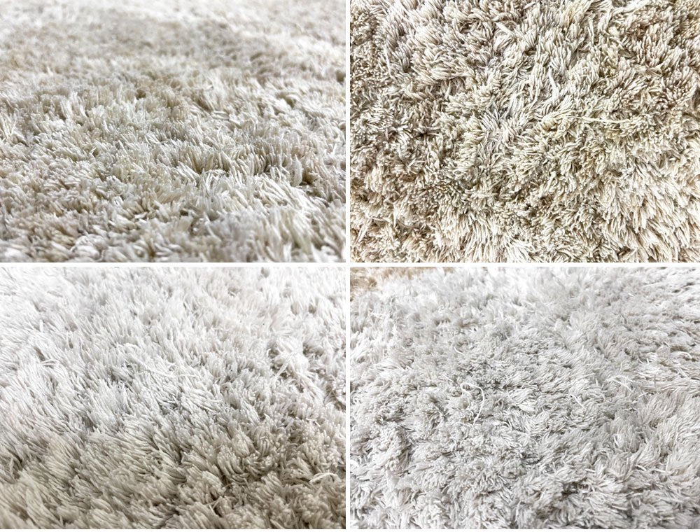 弊社で出品されている絨毯・ラグは中古品またはビンテージ品となり、埃落としや掃除機等の簡易清掃のみ行っております。水洗いや洗剤を使用したクリーニング等は、ビンテージの状態保存、また弊社設備の関係上行っておりません。予めご了承下さい。中古のラグにご不安のある方、アレルギーをお持ちの方は、ご購入をお控え下さいませ。またご近所のクリーニング店等にご自身でご依頼される場合は、大型絨毯やビンテージ品のクリーニングを行っているかご購入前にご確認下さい。ご購入後のご返品・ご返金は致しかねます。