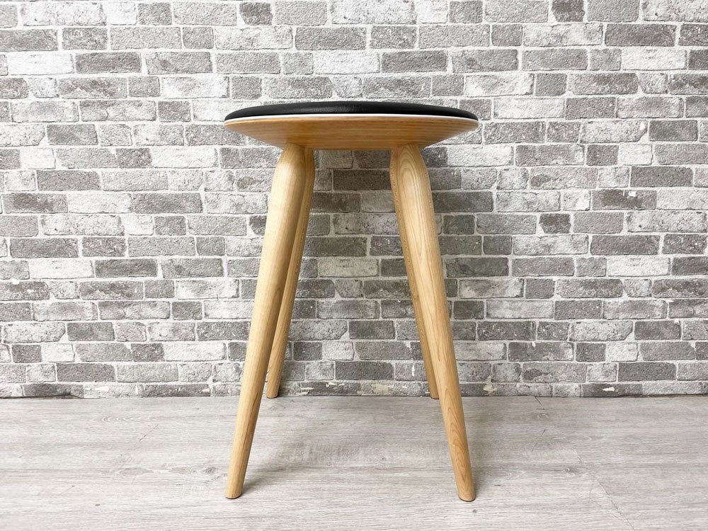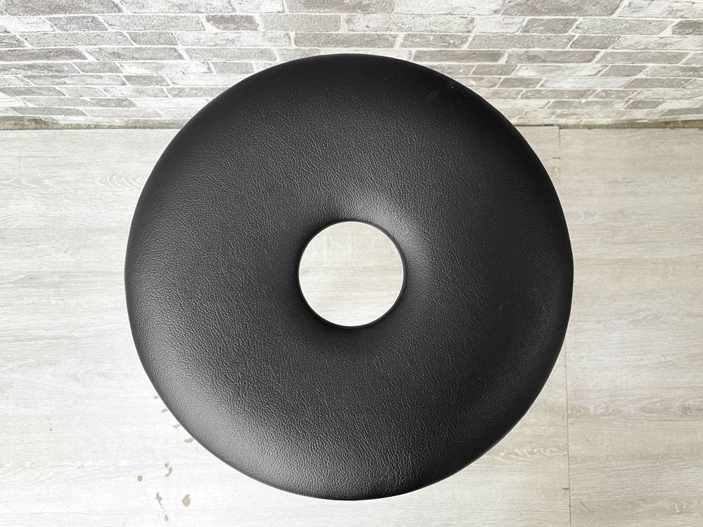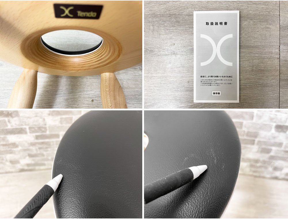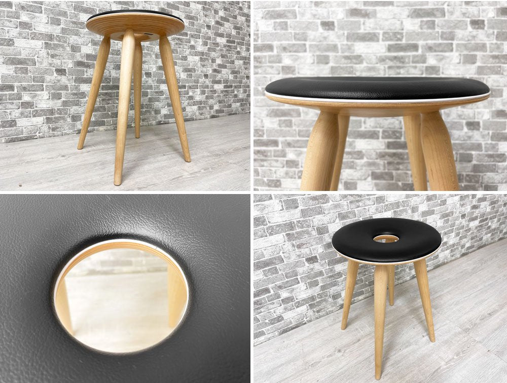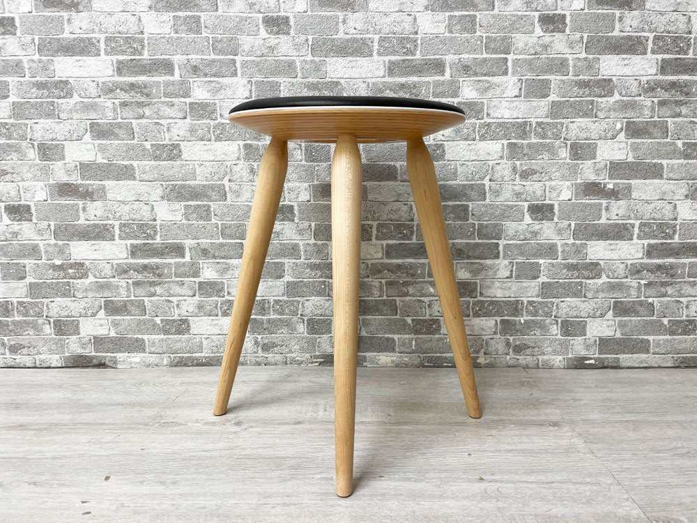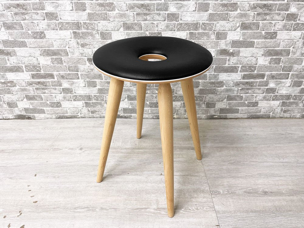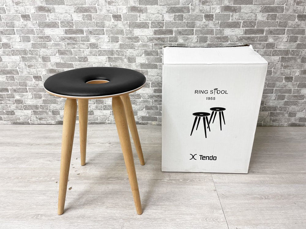 天童木工 TENDO 3165 リングスツール 加藤徳吉 ブラック メープル材 ビニールレザー 箱付 美品 グッドデザイン賞 定価39,600円 ●