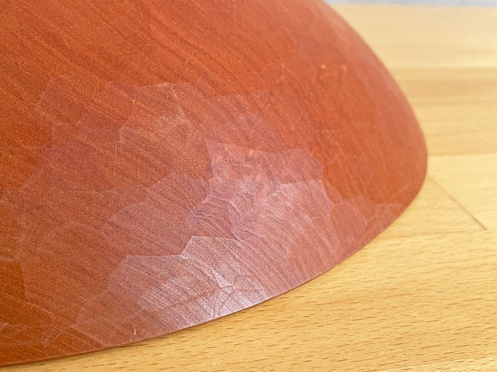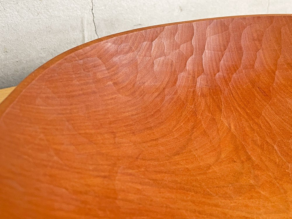 今回入荷したのは、山桜で作られた大きな木の器。山桜は緻密な木肌と重硬な気質、磨くと光沢が出ることで知られており、独特の赤みには温もりと確かな質の良さが感じられます。