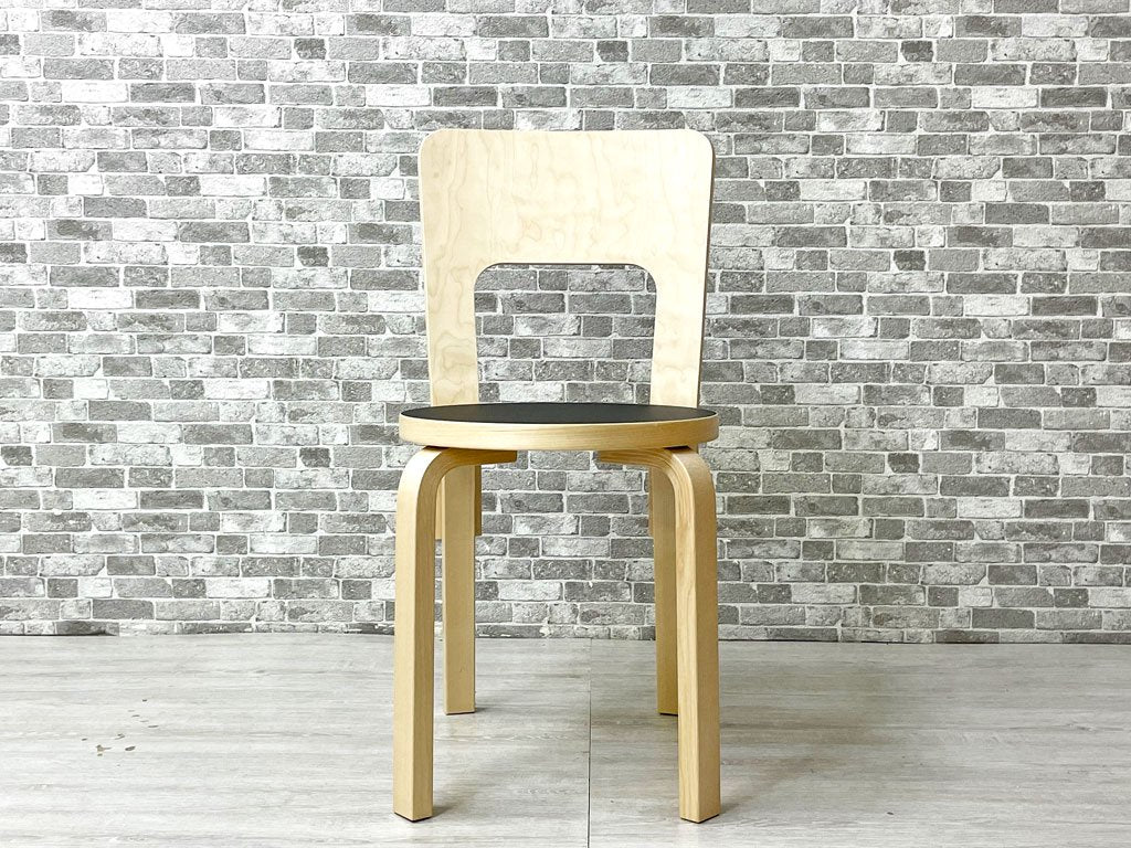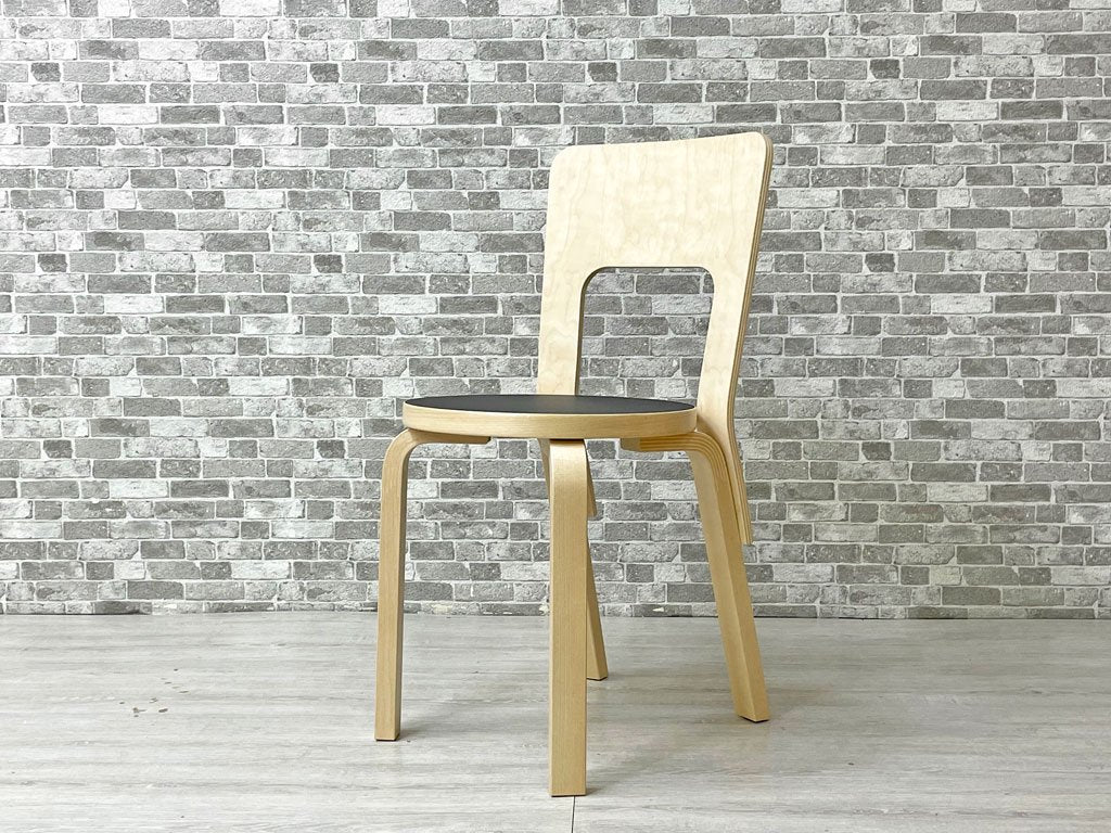 アルテック artek チェア66 Chair66 ダイニングチェア バーチ材 × ブラックラミネート アルヴァ・アアルト フィンランド 北欧家具 ●