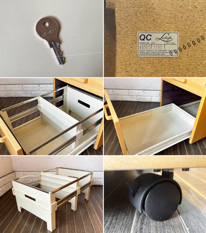 ラボファ Labofa ビーチ材 デスクキャビネット ワゴン ファイリングドロワー 2段 鍵付 デンマーク製 北欧家具 ◎