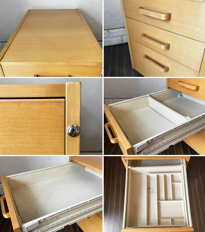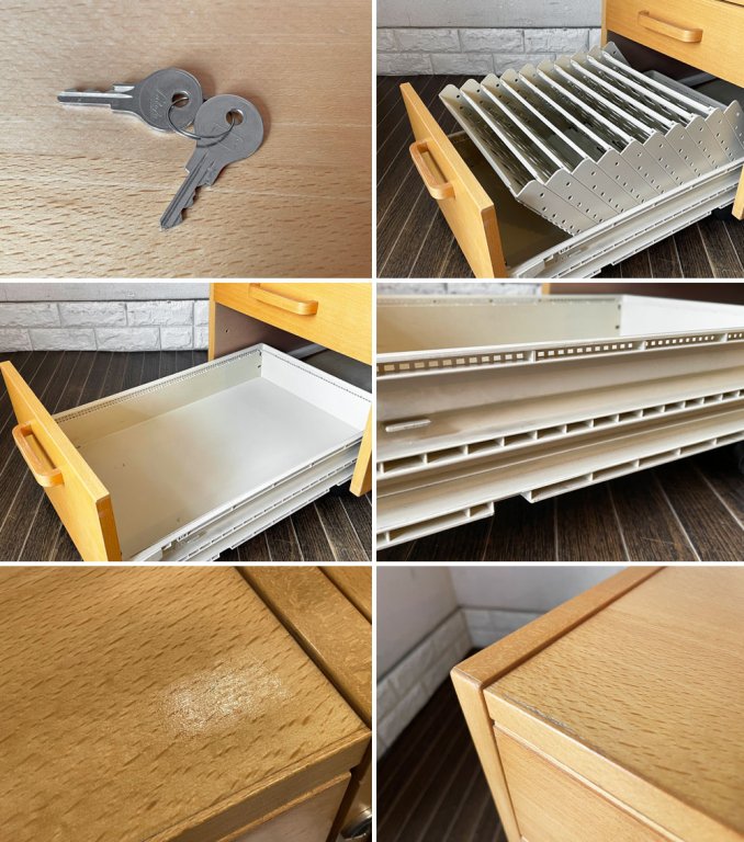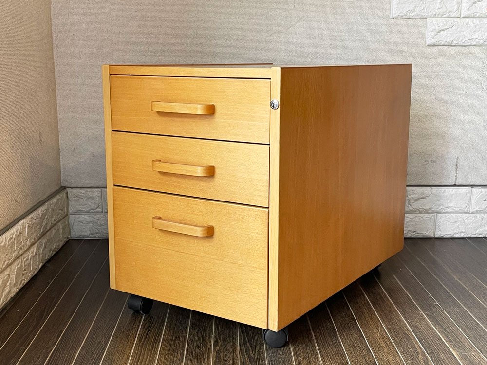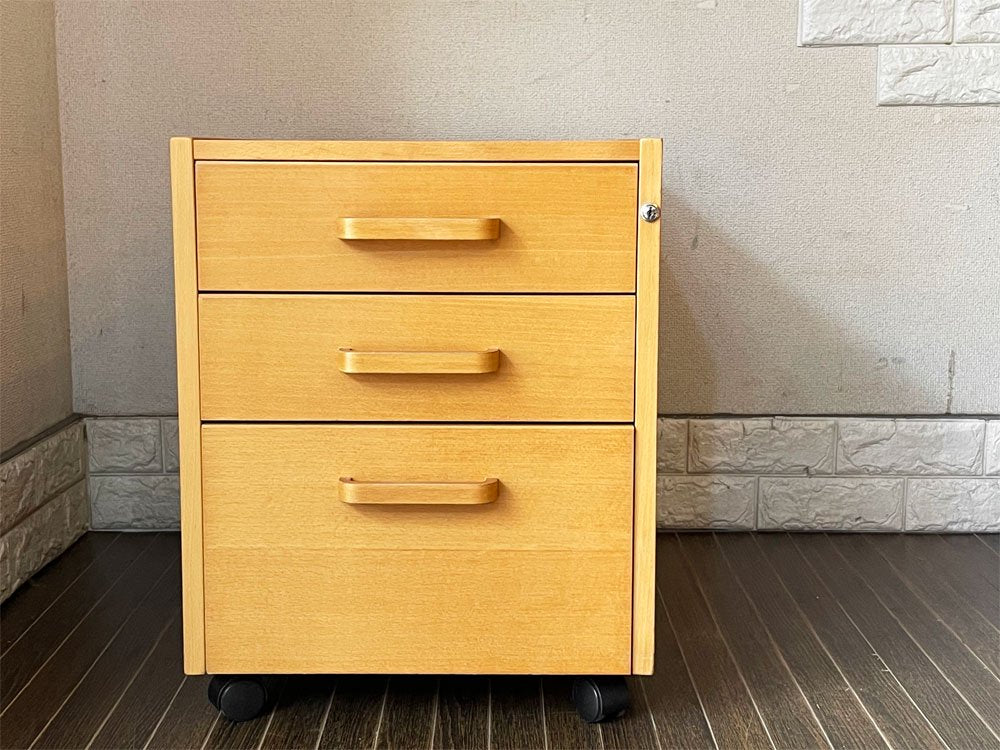 ラボファ Labofa ビーチ材 デスクキャビネット ワゴン ファイリングドロワー 3段 鍵付 ファイル収納付き デンマーク製 北欧家具 ◎