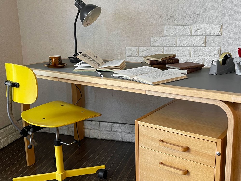 アルヴァ・アアルトの家具を彷彿とさせる、アーチレッグを用いた品格あるこちらのデスク。