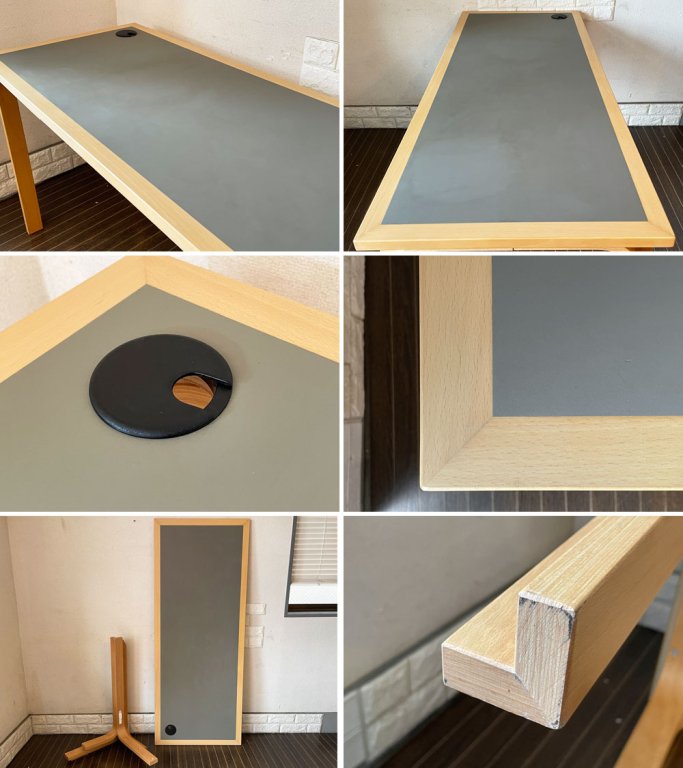 マグナスオルセン Magnus Olesen デスク ビーチ材 × リノリウム天板 W150cm コード穴有 R・ティエセン & J・ソーレンセン デンマーク 北欧家具 ◎