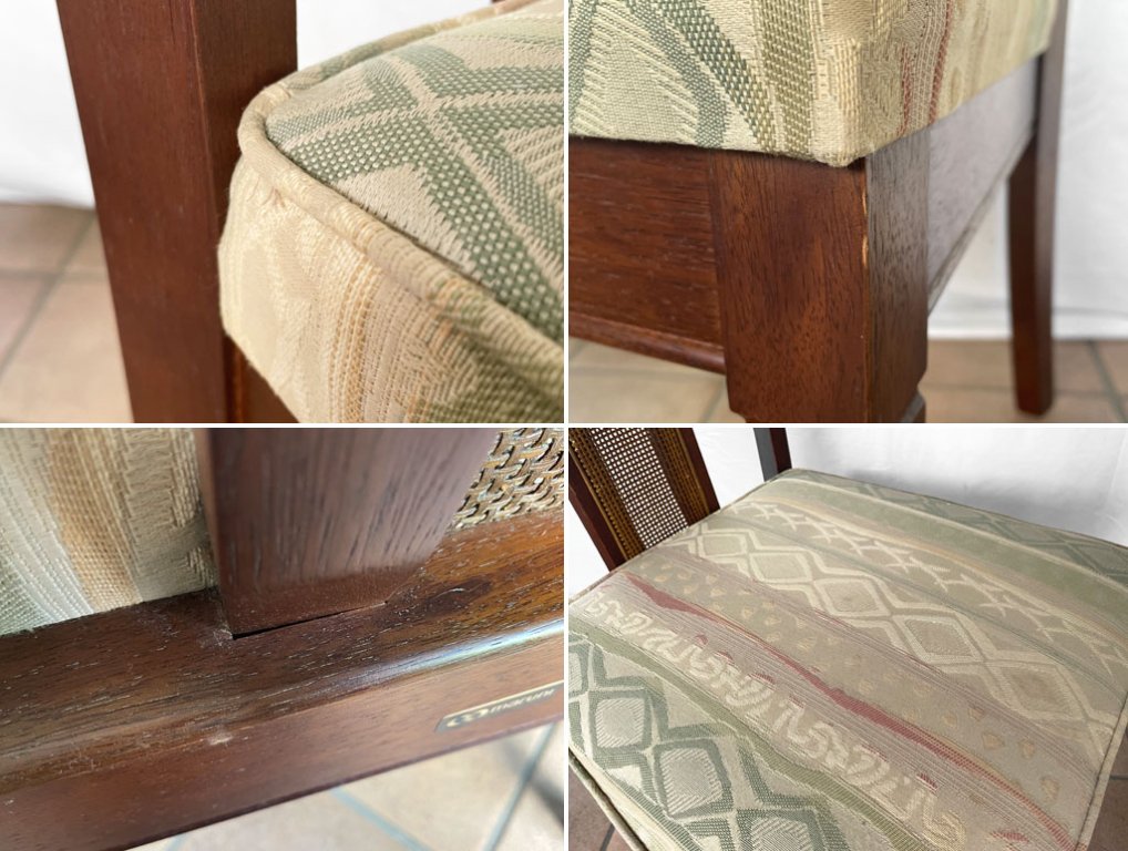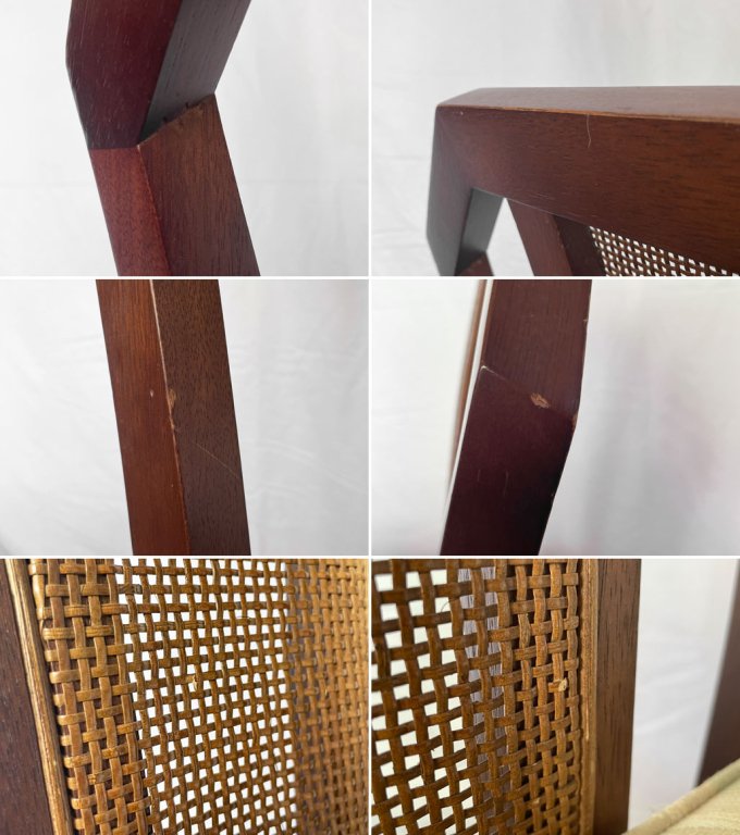 使用に伴い背もたれに微細なほつれ、座面にヤケ、フレームには打痕、擦れやペイントロスが見られますが、大きく美観を損ねるものではございません。その他クッションのへたりやがたつき等使用上問題となるダメージも見受けられず、これからも気持ち良くお使い頂けるコンディションを保っております。