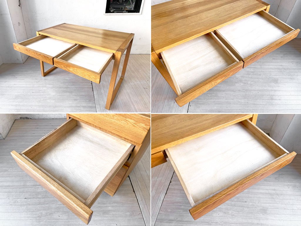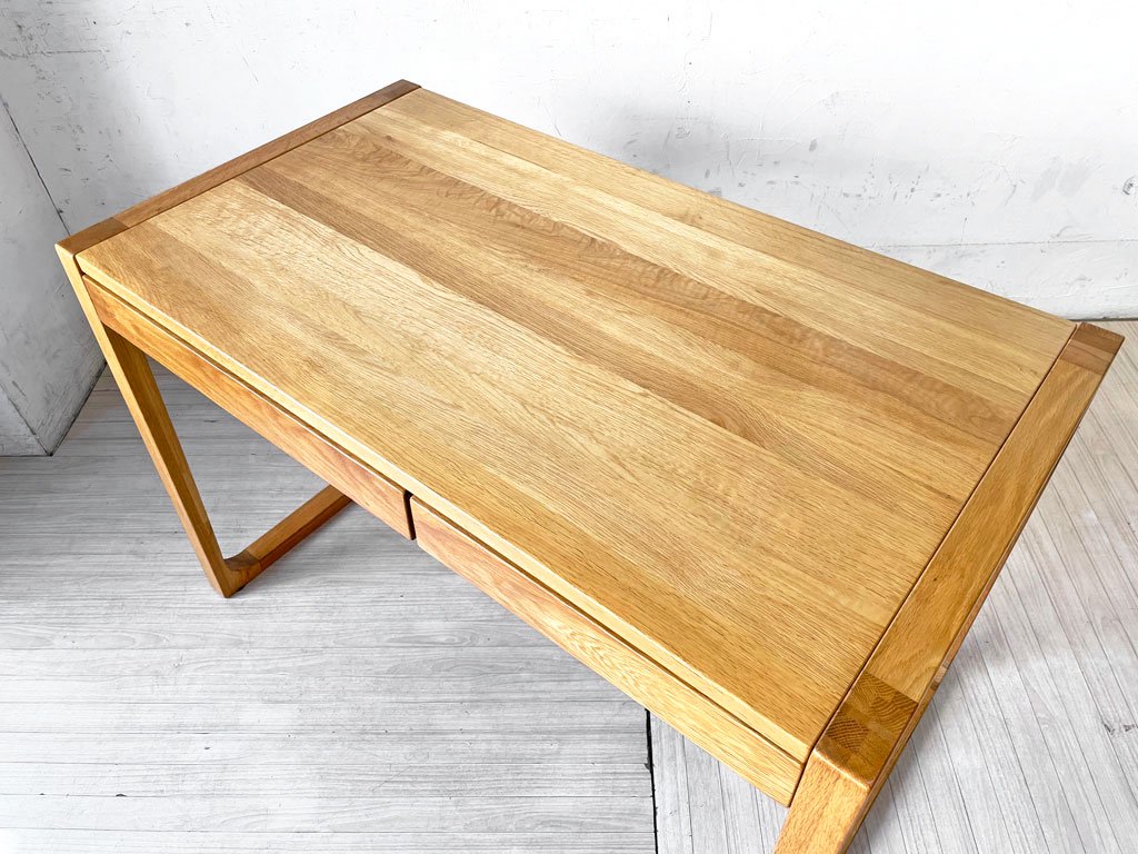 同社のデスクの中でも一番の広さを誇る天板サイズと良質なオーク材を用いたロングライフデザインがコンセプトのプロダクト。