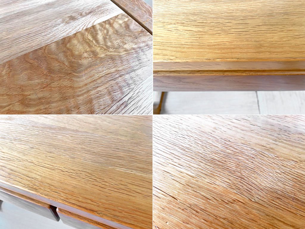 使用に伴う多少の傷やスレ、抽斗内の若干の汚れなどがございます。また、デスクキャビネットの最下段抽斗内の仕切り板が欠品しております。その他、大きく目立つようなダメージやご使用に問題のある箇所などもございません。USED品として概ね良好なコンディションを保っております。