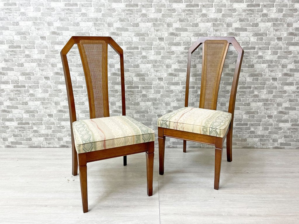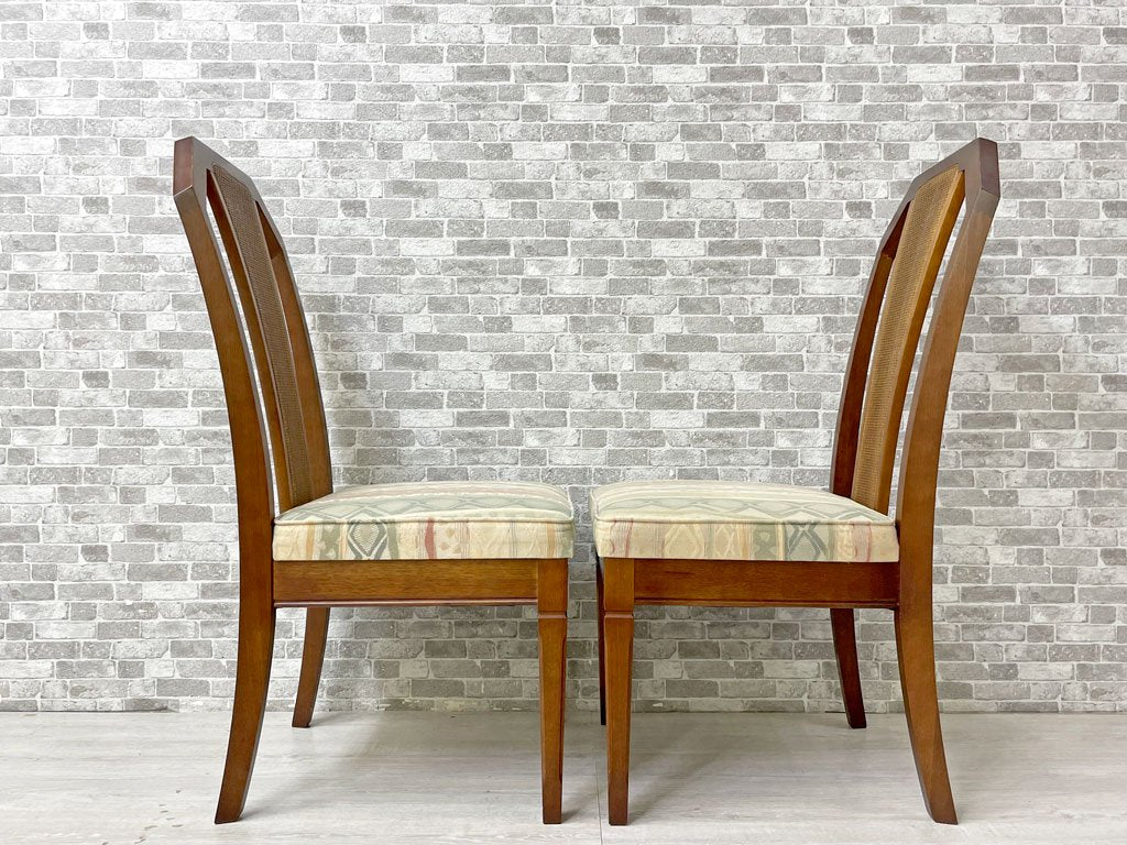 マルニ木工 maruni 地中海シリーズ ニース ハイバック ダイニングチェア 2脚セット ラタン ファブリック ヨーロピアンクラシカルデザイン 合計定価約12万円 ●