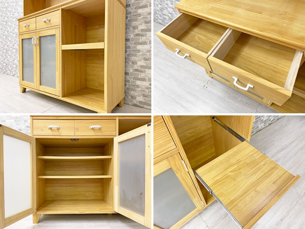 更に炊飯器など設置に便利なスライド式のレンジボードが付き、用途に合うよう設計された大容量の収納が完備された便利な一台となっております。