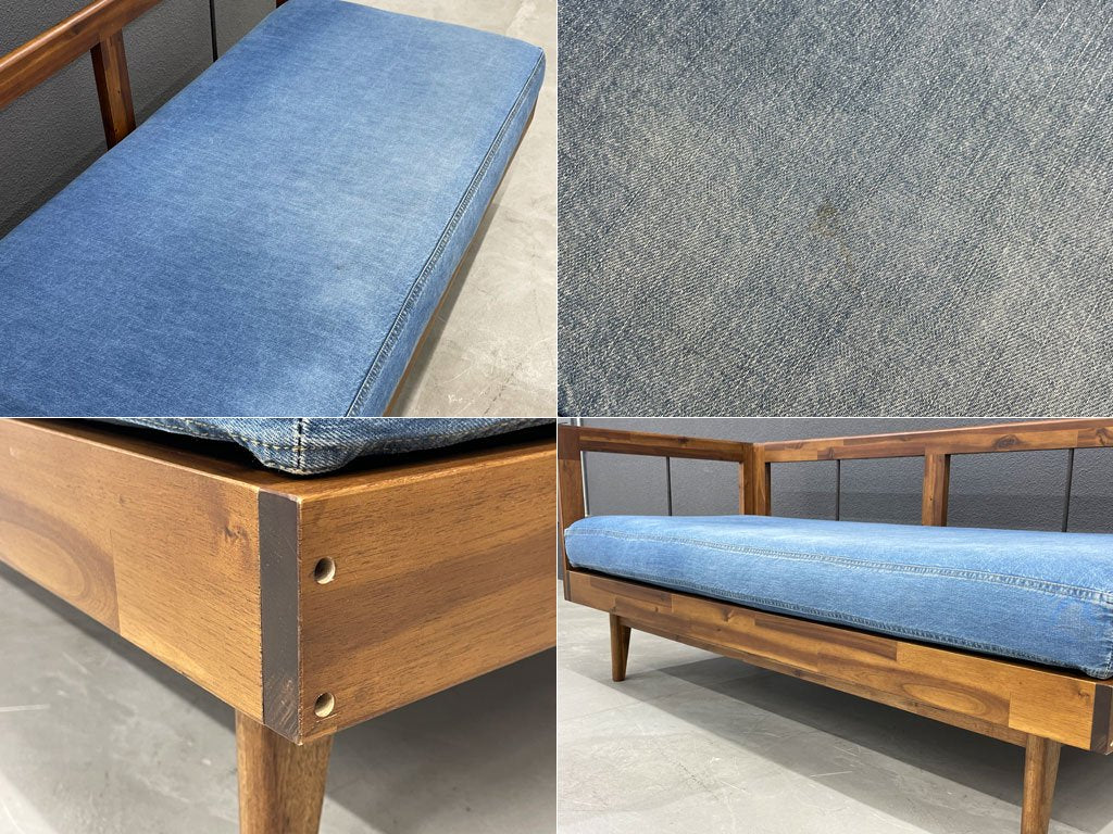 スウェラ swella ベンチアームソファ デニム生地 アカシア無垢材 片アーム
