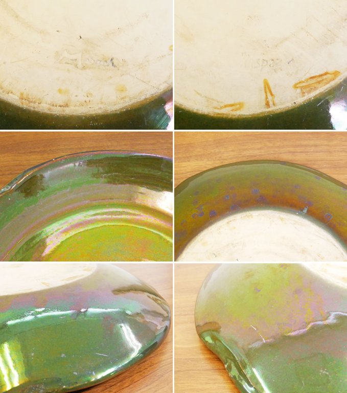 モバック Mobach ceramics ラージプレート 大皿 luster glaze グリーン ラスター Φ36cm オランダ ダッチビンテージ ミッドセンチュリー ●
