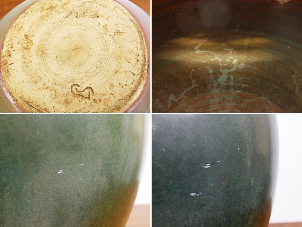 こちらはビンテージ品です。製造時に出来た釉薬のムラや凹凸、使用に伴う擦れや傷などが見受けられます。また裏面や内部に落としきれない汚れがあるものの、ご使用に問題となる欠けやひび割れなどの大きなダメージはございません。ビンテージ品としては概ね良好なコンディションを保っております。