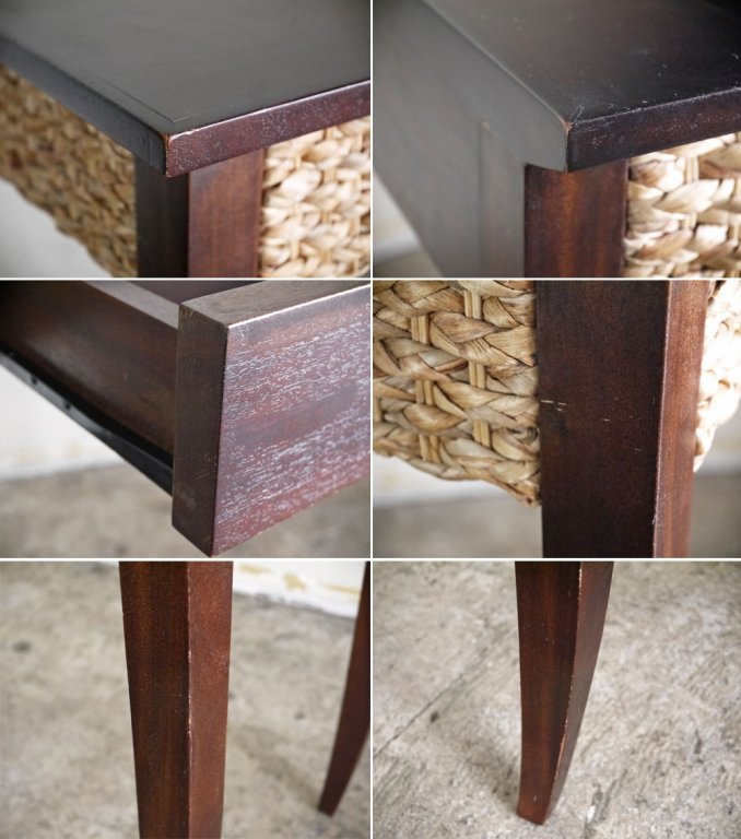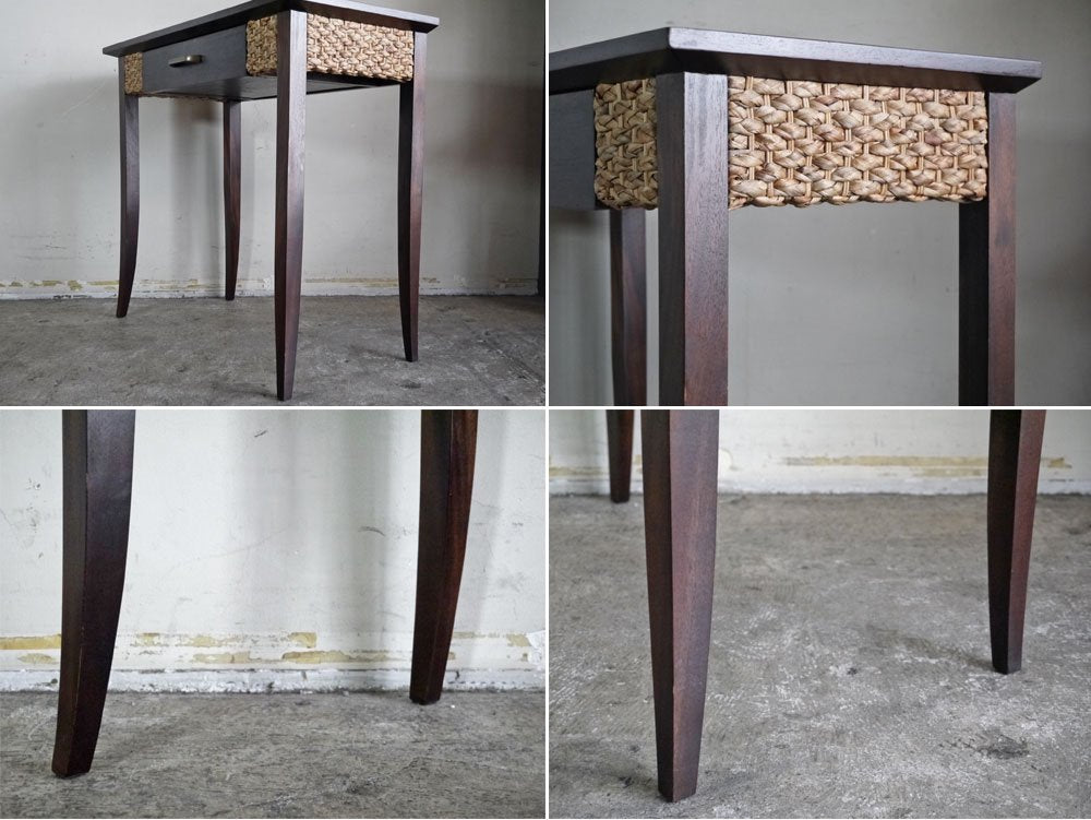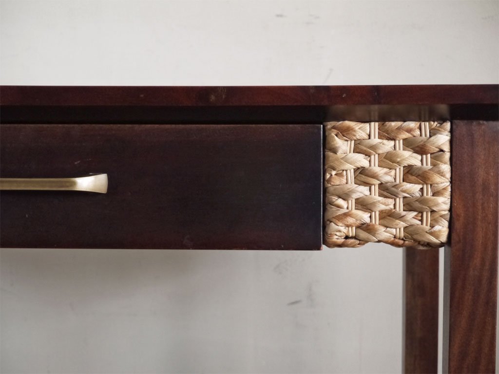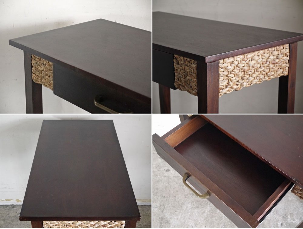 アジアン家具 コンソールテーブル デスク ウォーターヒヤシンス マホガニー 1ドロワー ■