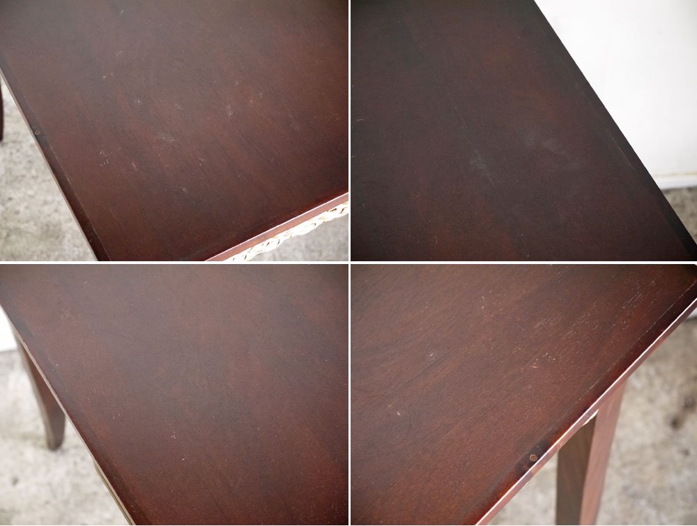 使用に伴い、天板に擦れや小傷、くすみ、角に小さな打痕、脚部に細かなペイントロスが見受けられます。