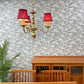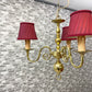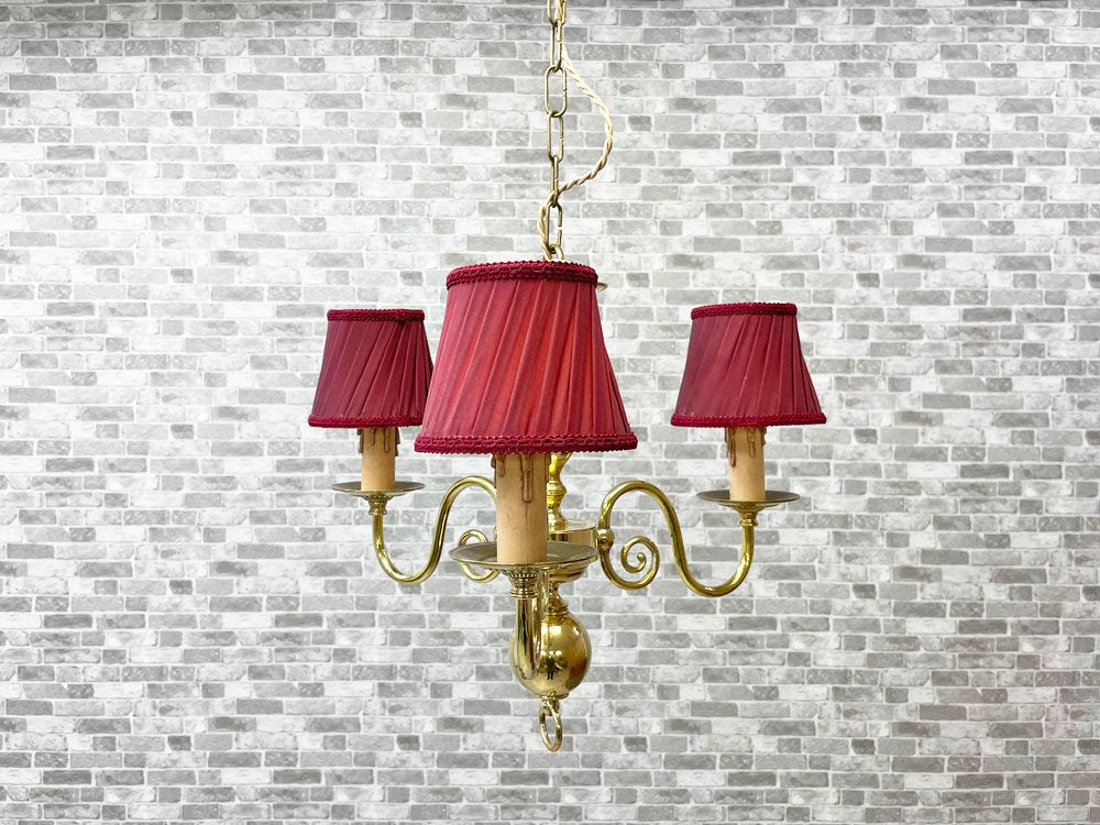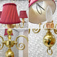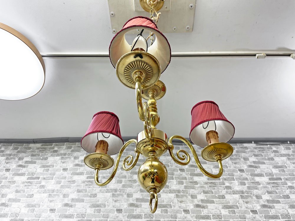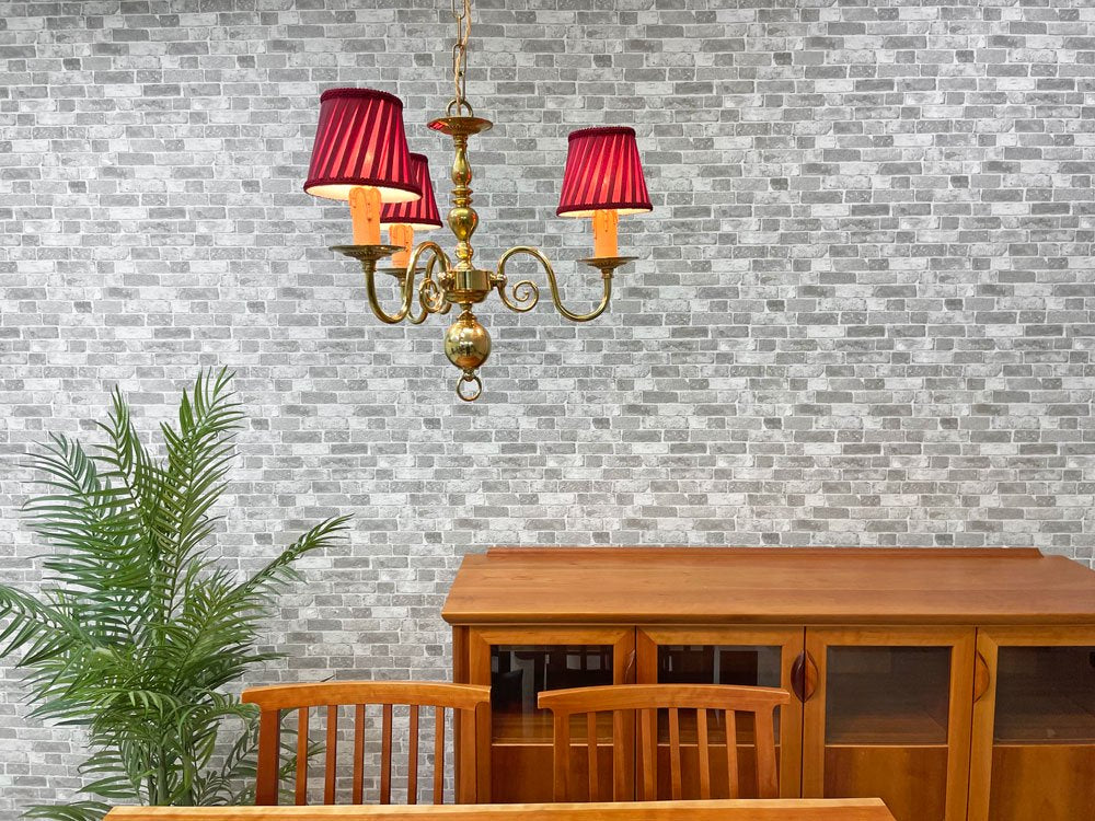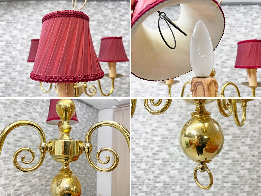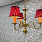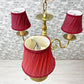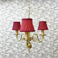 こちらは、赤いランプシェードが目を引く、ヨーロピアンクラシカルのシャンデリア『ヴェローナ』。布シェードから漏れる柔らかな光でお部屋を優しく包み込んでくれます。