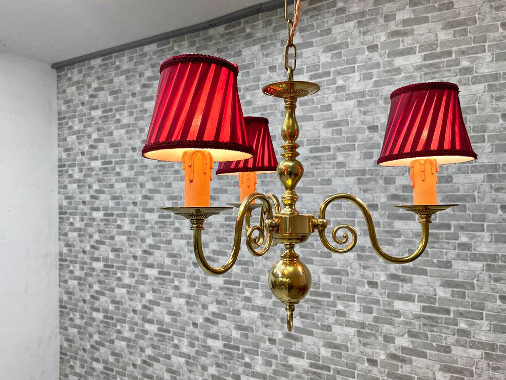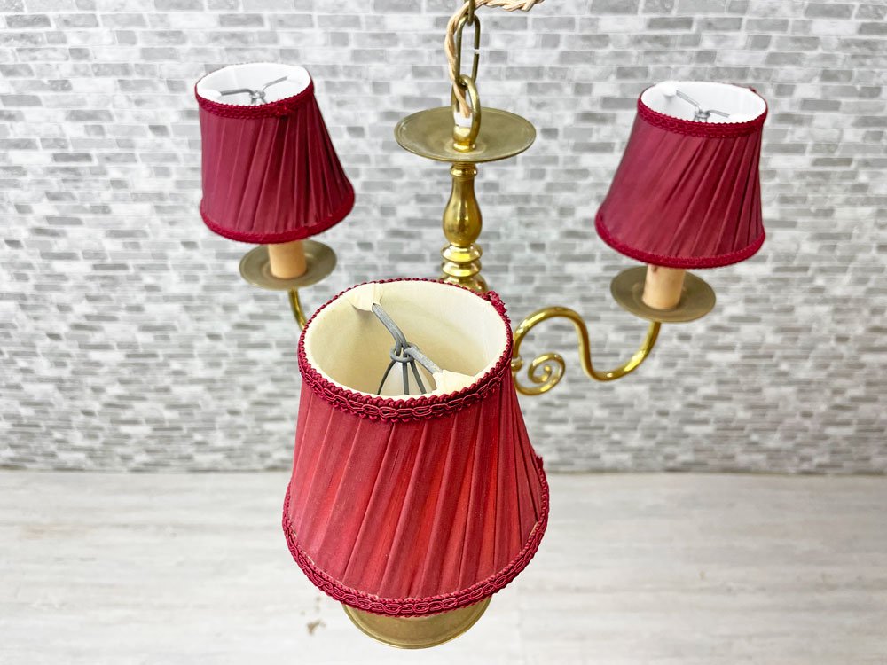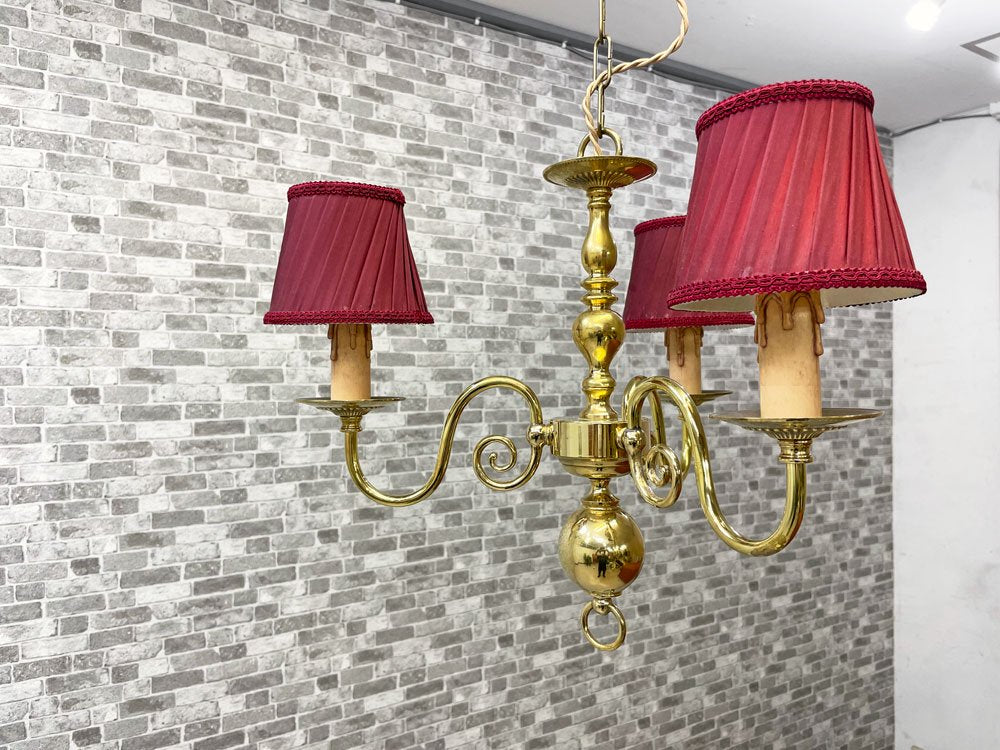 ワッツ Watts ヴェローナ シャンデリア 3灯 ペンダントランプ 布シェード 真鍮色 クラシカル アンティークスタイル ●