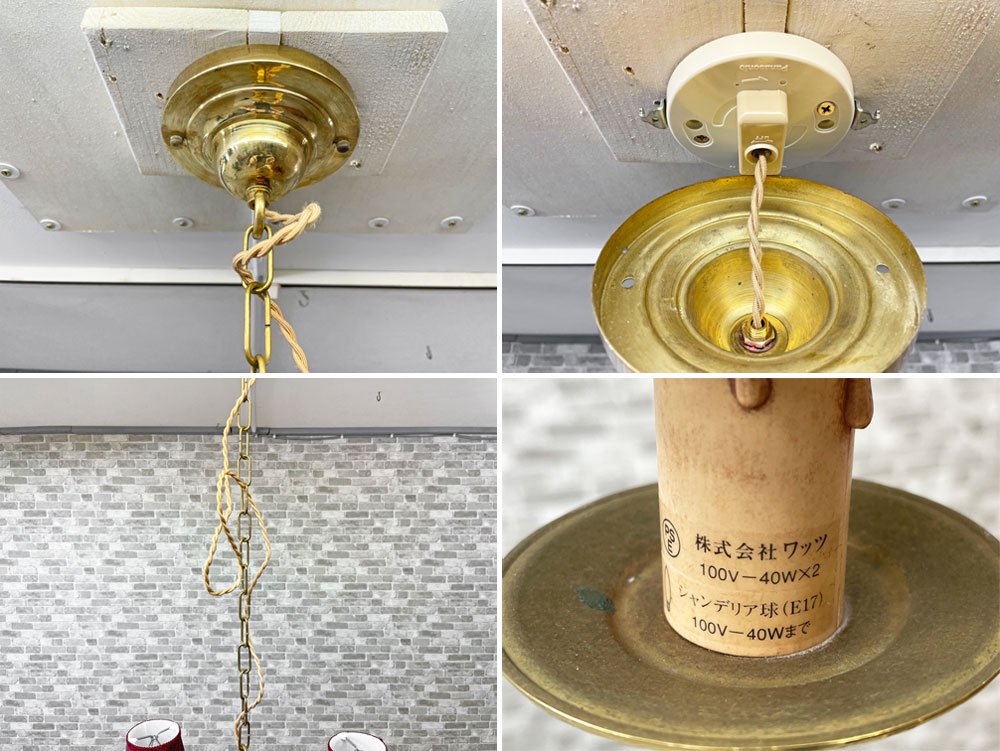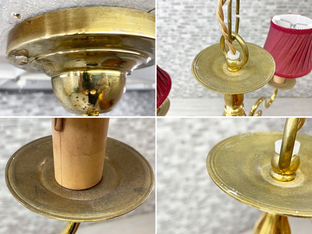 使用に伴う擦れや傷、金属部分に錆びやくすみ、布シェードの内側に染みや汚れ等が見受けられます。美観を大きく損ねるような汚れや、機能を損なう程の大きなダメージなどはございませんので、中古品としては概ね良好なコンディションを保っております。