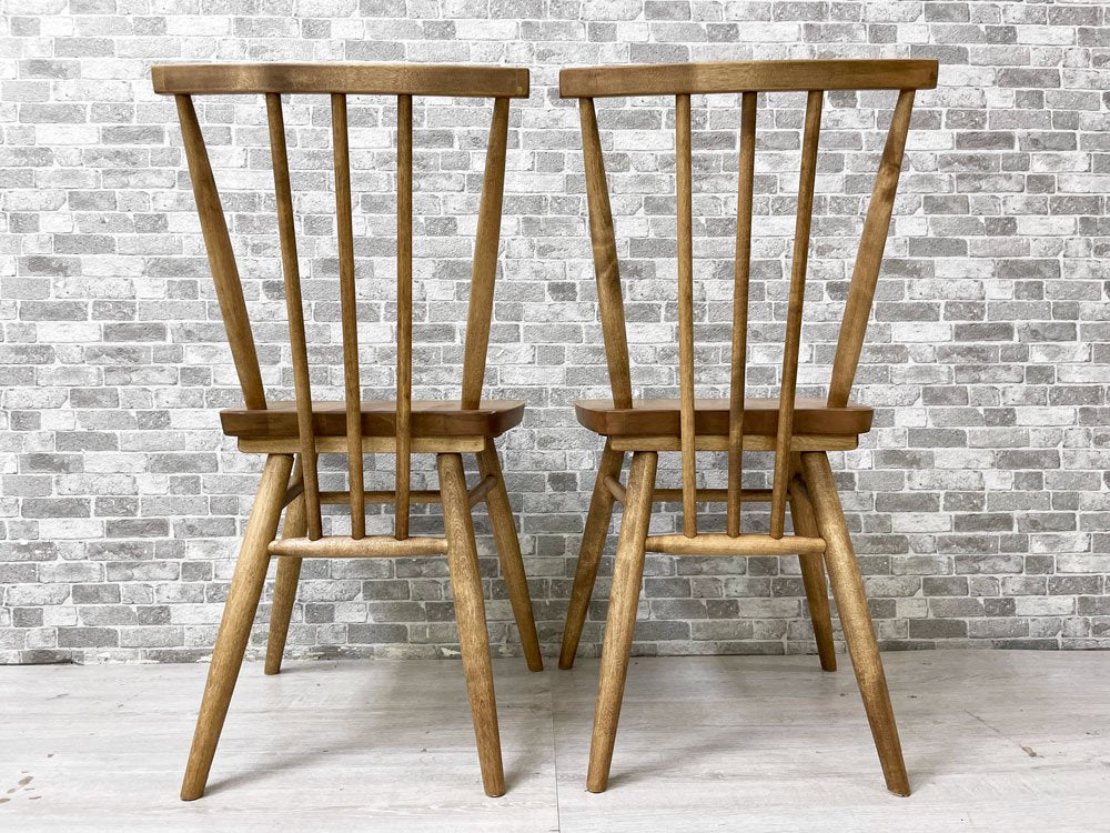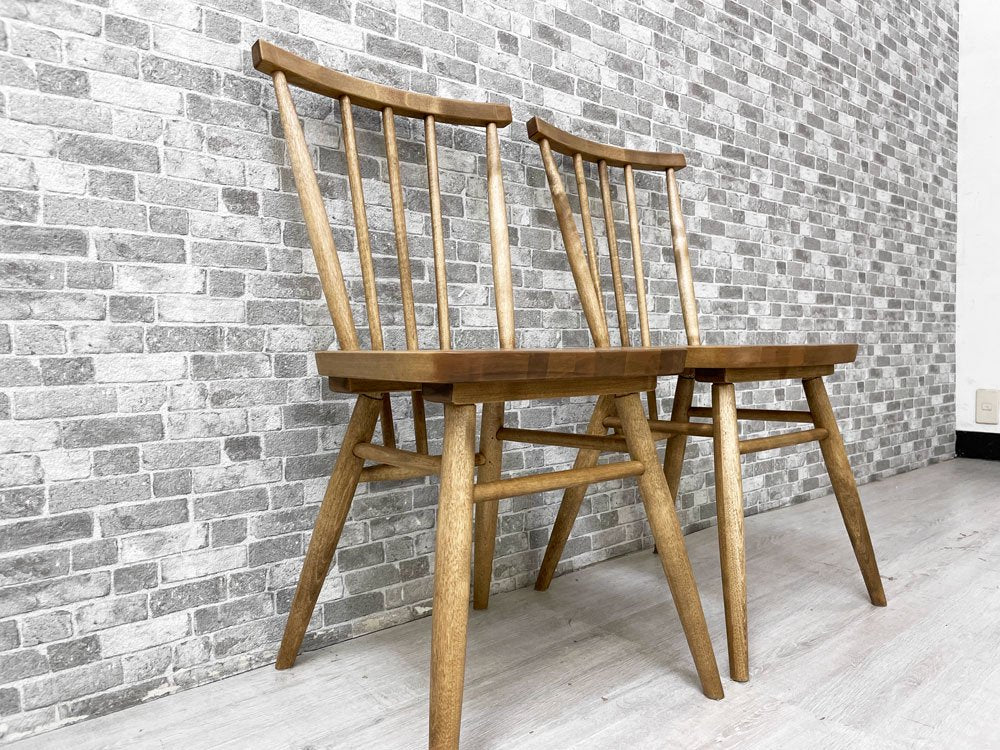 イギリス・アーコール社の「スティックバックチェア」のように背もたれ上部から脚部の貫までフレームが繋がるスポークバックによりバックスタイルも美しく、お部屋中央へのレイアウトも◎です。