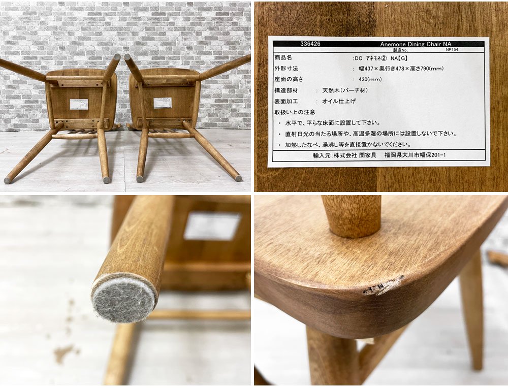 ノラ nora. アンジー and gシリーズ アネモネ anemone ダイニングチェア バーチ材 オイル仕上げ 2脚セット 関家具 北欧スタイル ナチュラル 定価総額¥44,000- ●