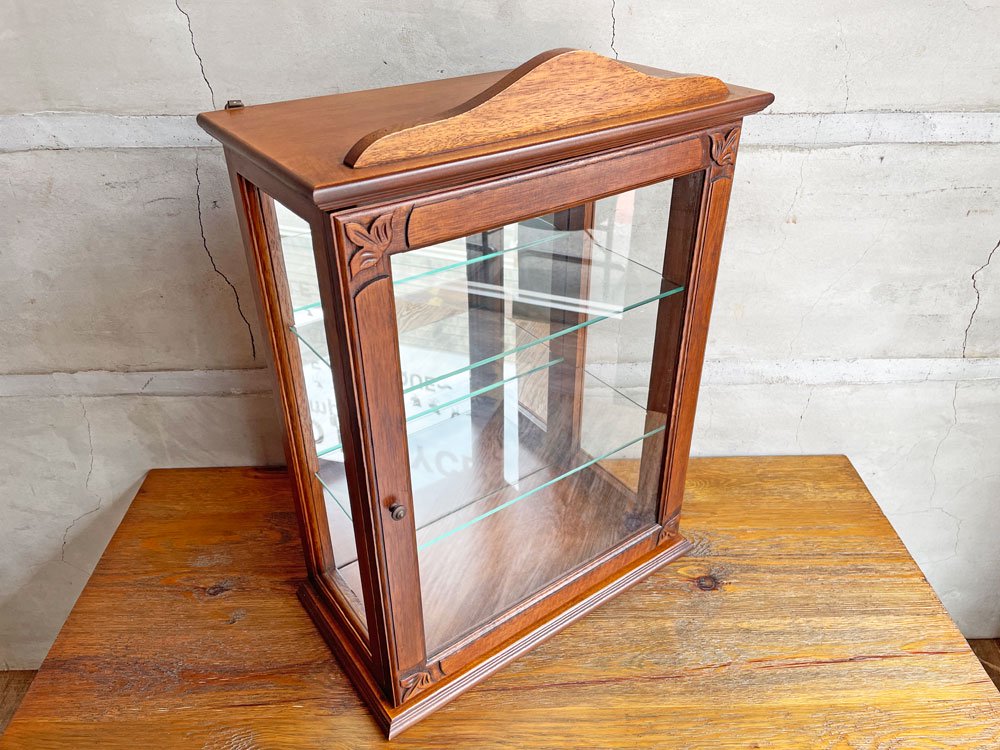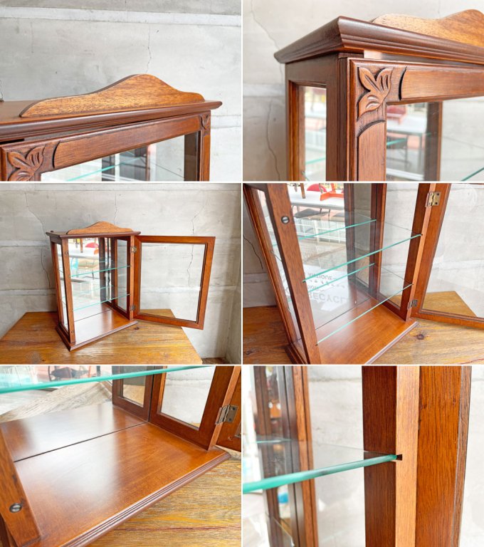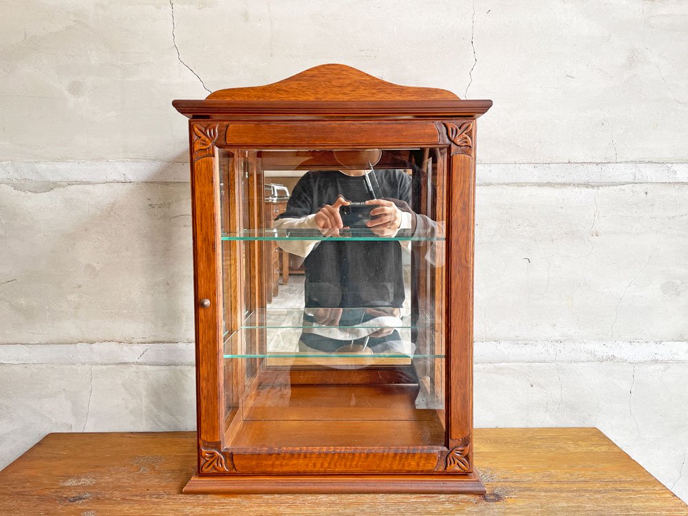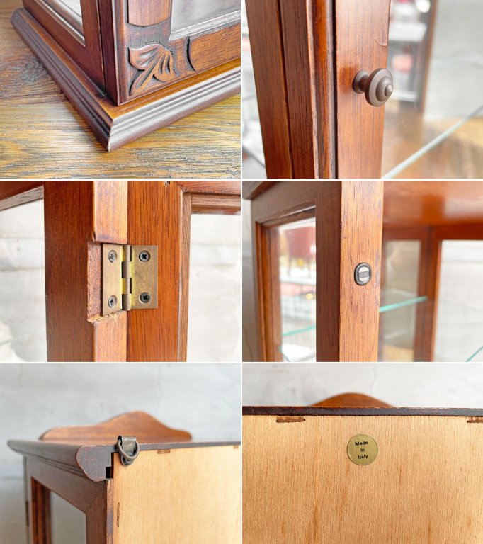 イタリア マホガニー ガラス ミニキャビネット キュリオケース コレクションケース 飾り棚 W39×H54♪