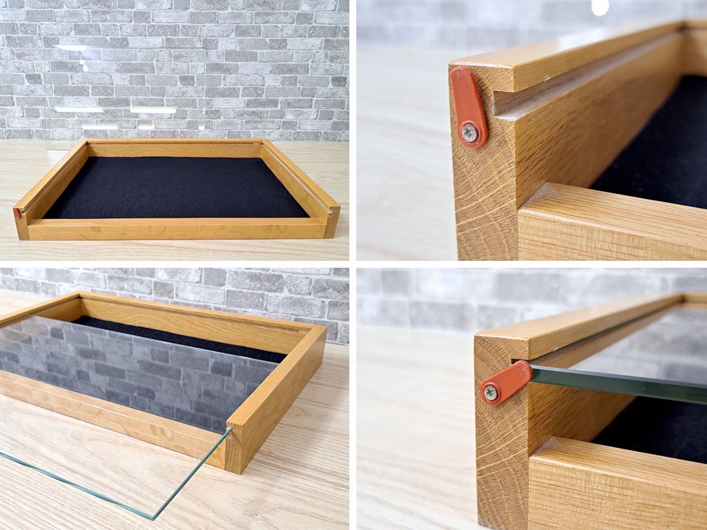 ワイスワイス WISE WISE Tools ジュエリーケース コレクションケース 小物置き トレイ 店舗什器 スライドガラス オーク無垢材 A ●