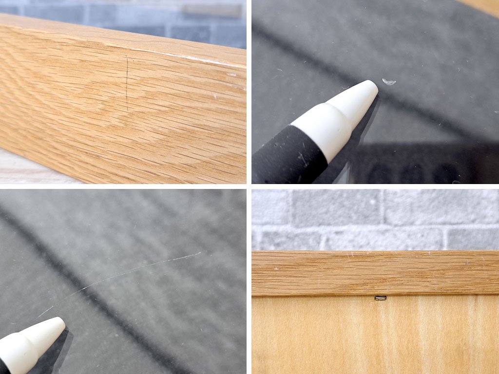 使用に伴う傷や打痕、インク汚れがフレームに散見され、ガラス天板の表面には軽微なスクラッチ傷が僅かに見られます。