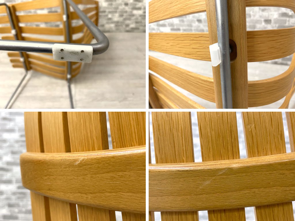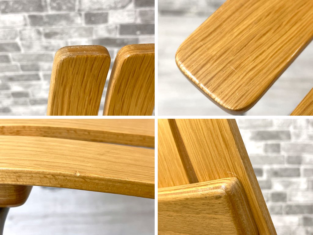 背もたれ背面や、側面に軽微な擦れや打痕がございます。また、座面裏のプラスチックパーツの一部に欠品がございますが、著しく美観を損ねるようなダメージは無く、中古品としては概ね良好なコンディションを保っております。