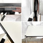爽やかなホワイトラミネート天板と、クロム仕上げのスチール部材が織り成すコントラストで圧巻の存在感を誇ります。