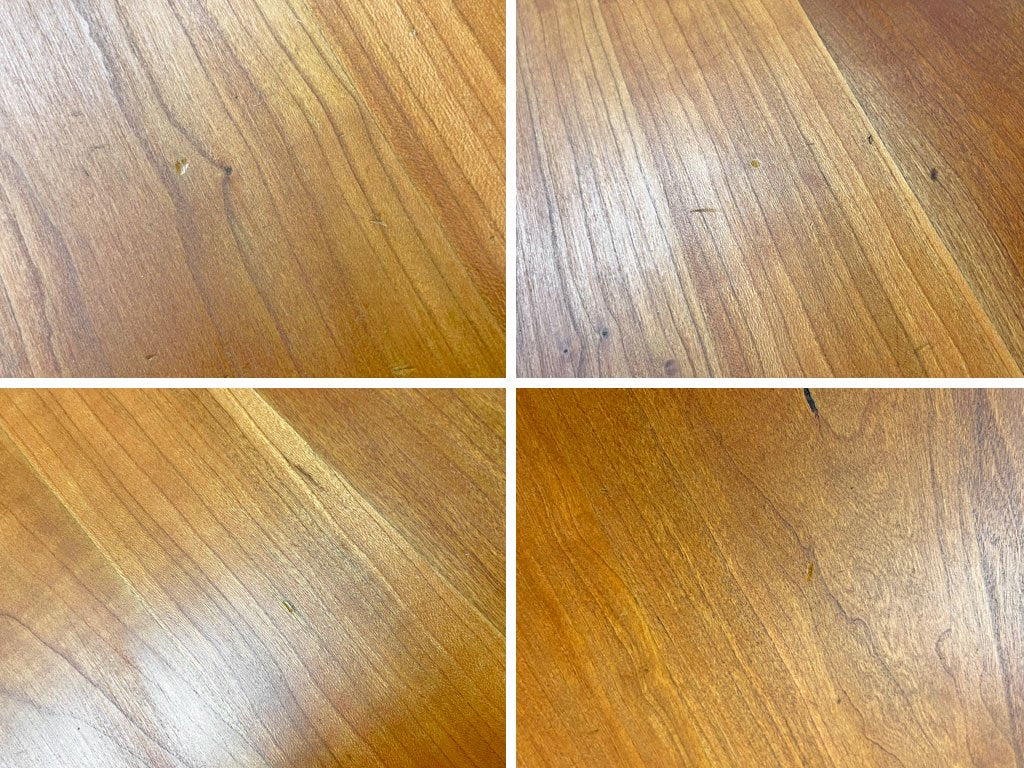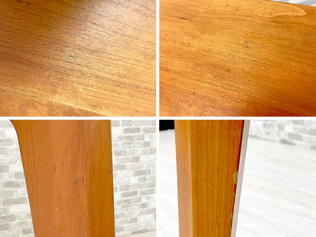 使用に伴う擦れや傷、打痕、スクラッチ傷、僅かな色あせ箇所などがございますが、美観を大きく損ねるような汚れや、機能を損なうような大きなダメージなどは特にございません。また天板は一度サンディングされ塗装し直した形跡がございます。