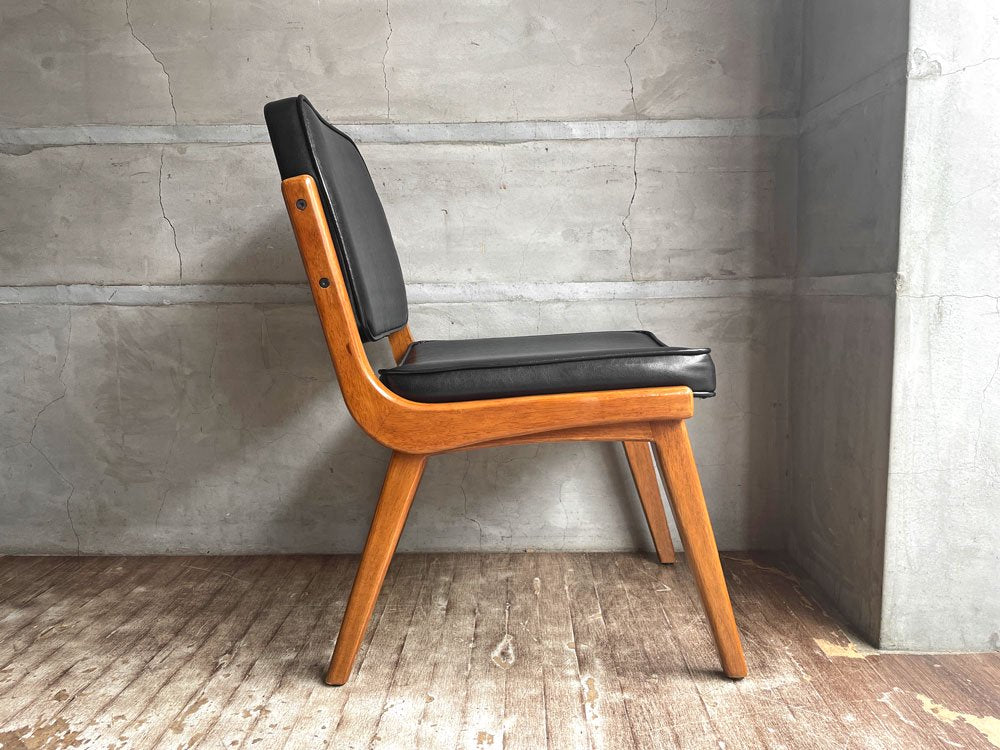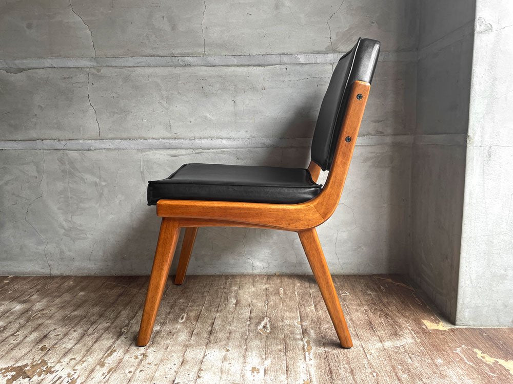 こちらは、同社のロングセラーアイテムの一つ。ラバーウッドとビニールレザーを組み合わせたシンプルなデザインで、横からの曲線的なフォルムが美しく、空間に柔らかな印象を持たせてくれます。