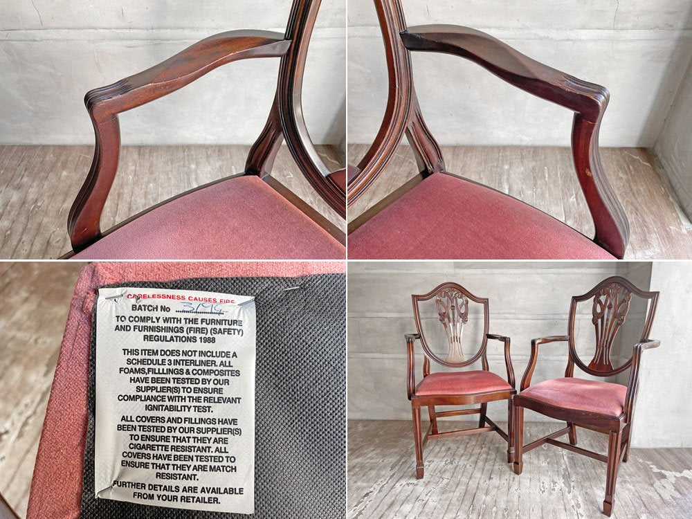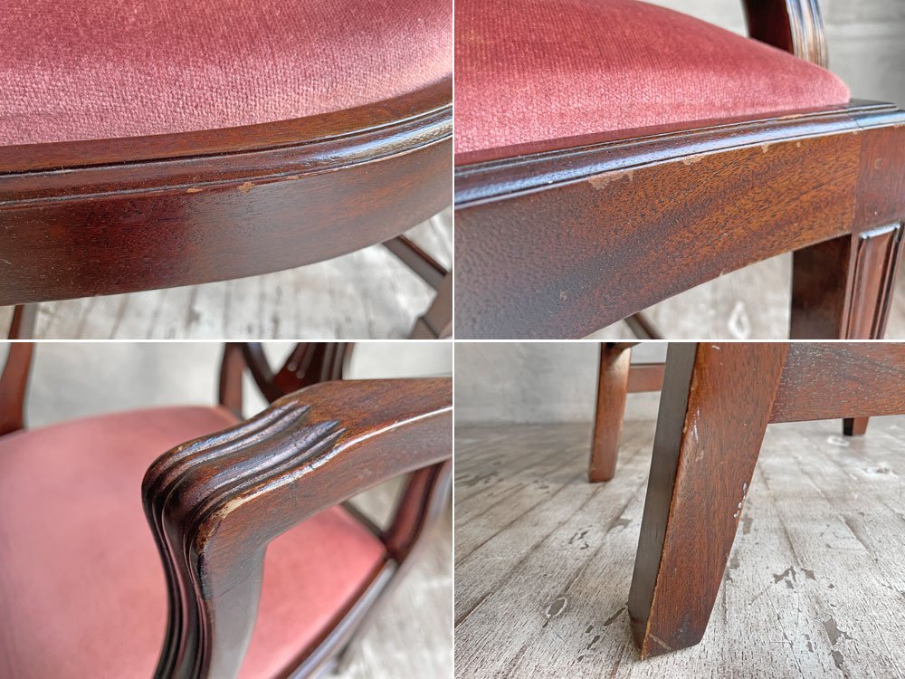 クラシカルスタイル ヘップルホワイトチェア ダイニングチェア マホガニー無垢材 ファブリック ピンク ヨーロピアン A ♪