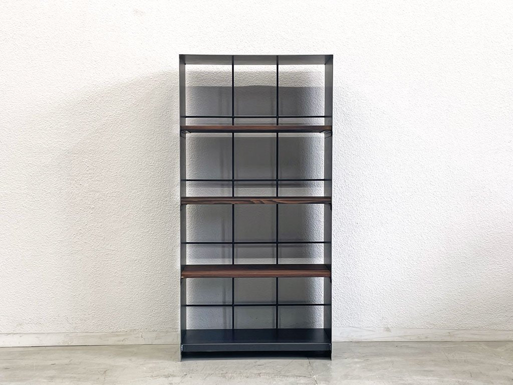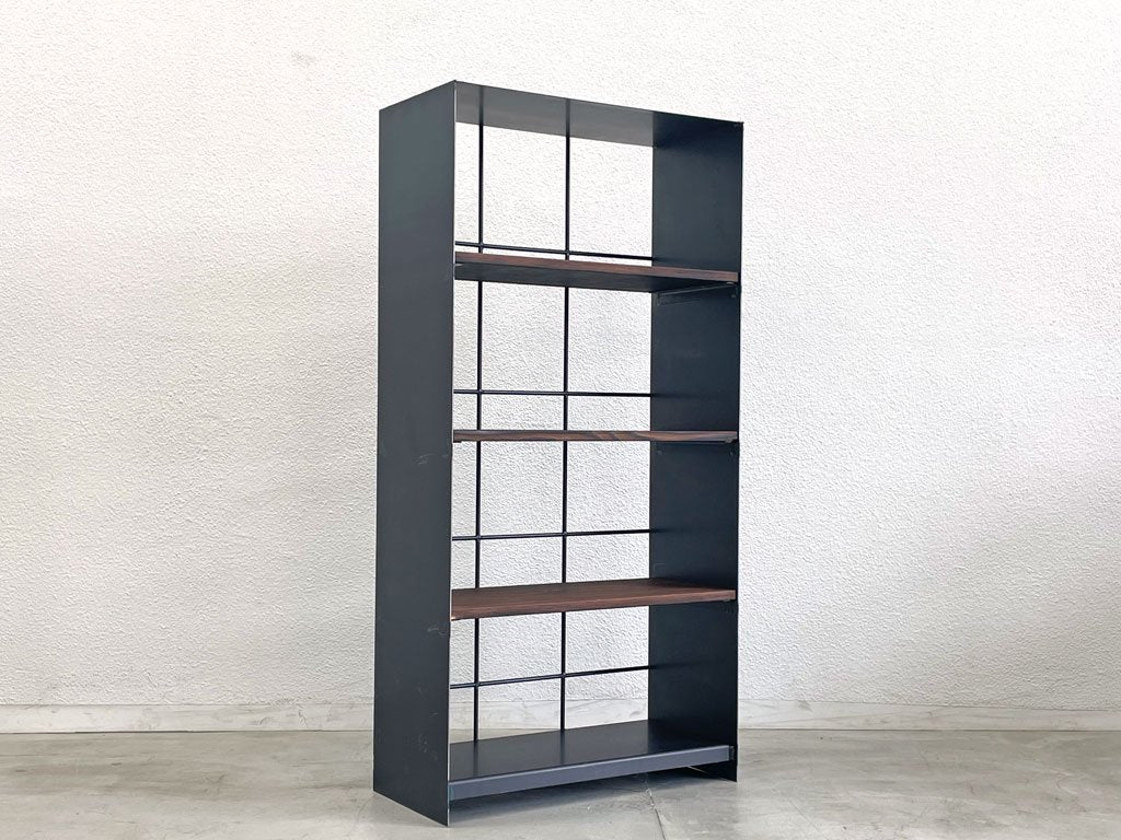 アール EARL アイアン家具 オリジナルデザイン製作 黒皮仕上アイアン×天然木 ブックシェルフ 本棚 定価57,300円 〓