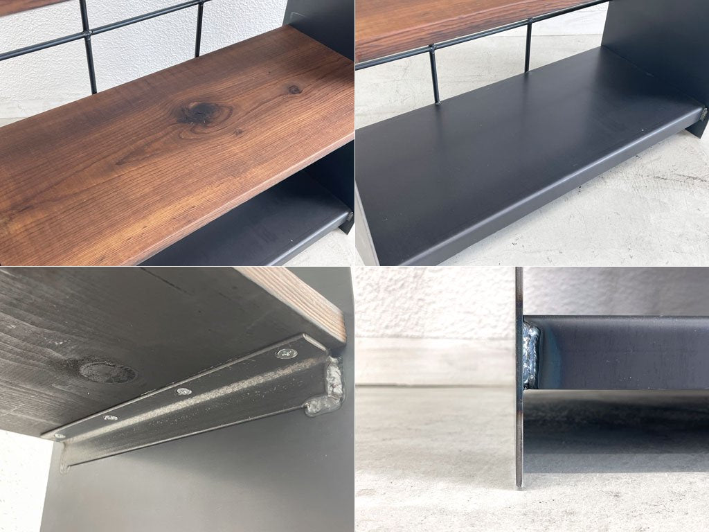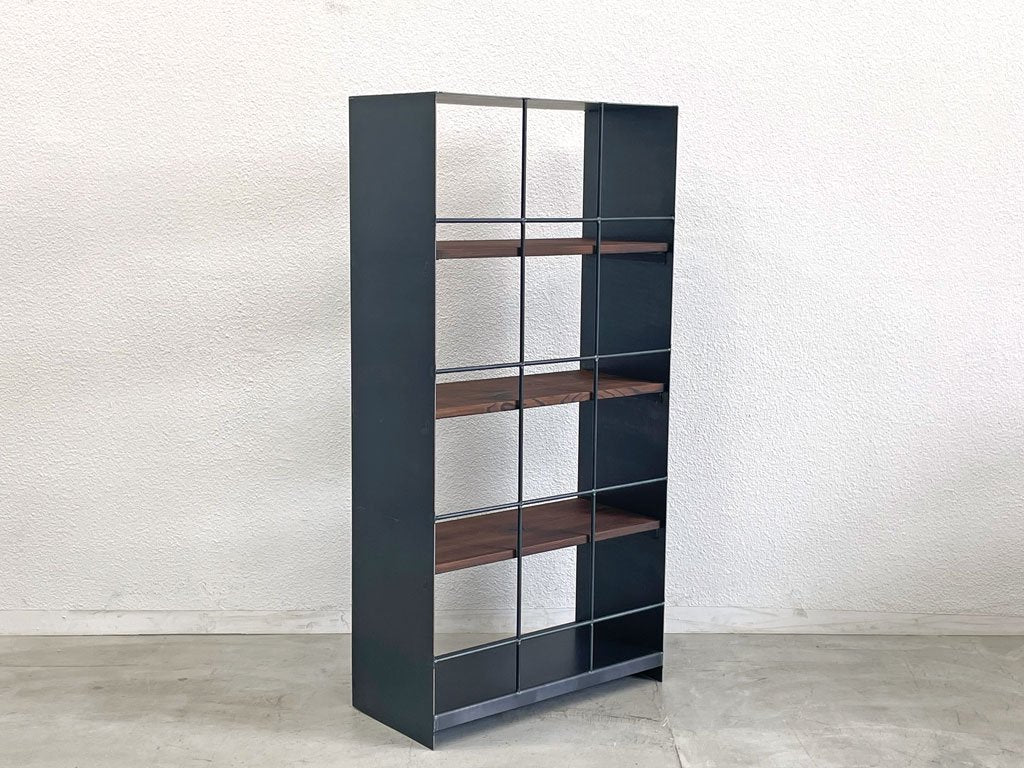 アイアン家具 オリジナルデザイン製作 黒皮仕上アイアン×天然木 ブックシェルフ
