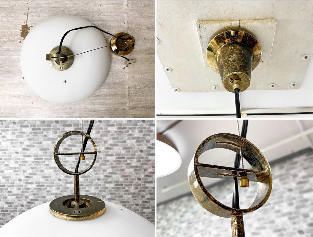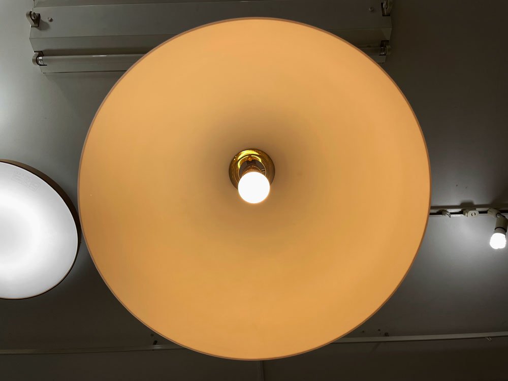 こちらは乳白色の美しいガラスシェードのビンテージ ペンダントライトです。