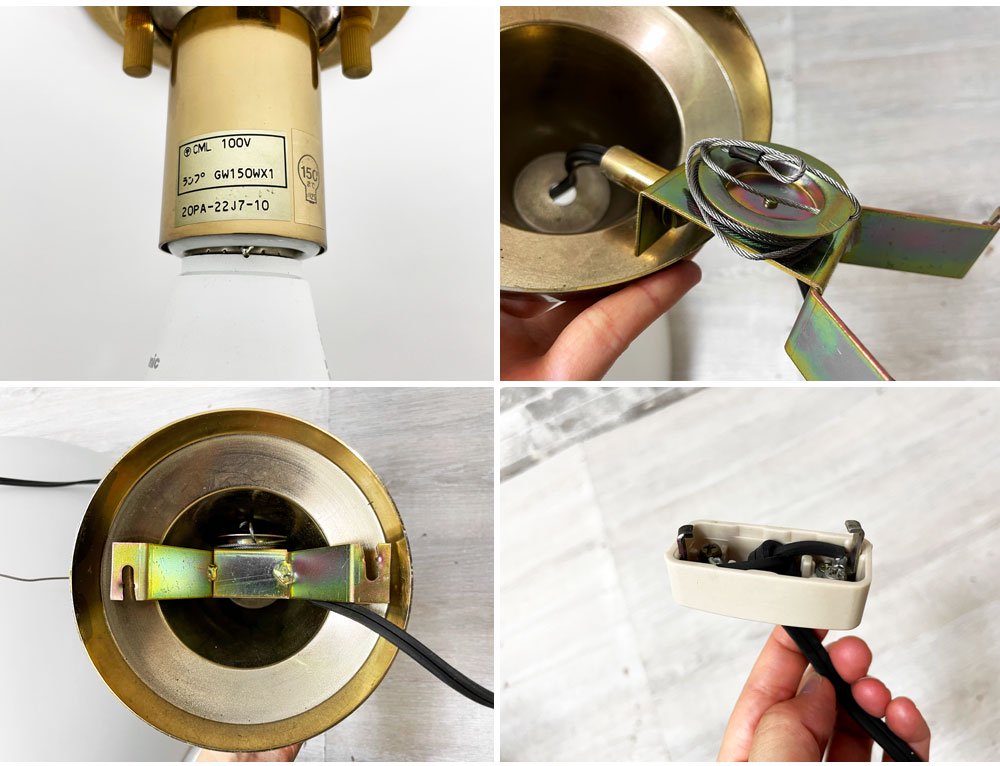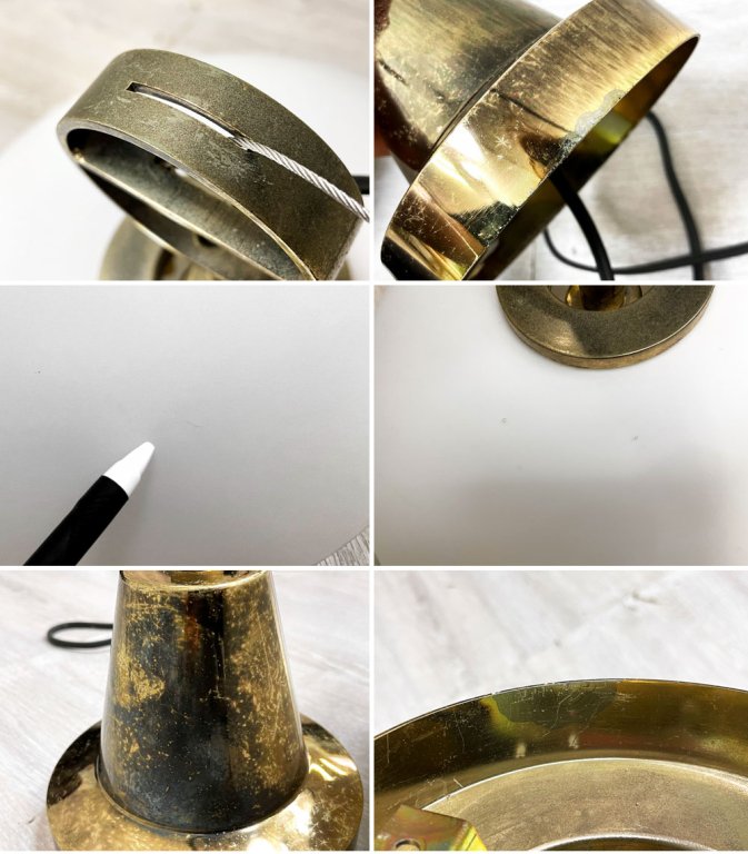 また、シェードと金具を固定する為のネジに備わったゴムリングは経年劣化しており、一つは欠品しておりますが、ご使用に影響はございません。