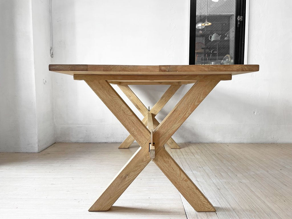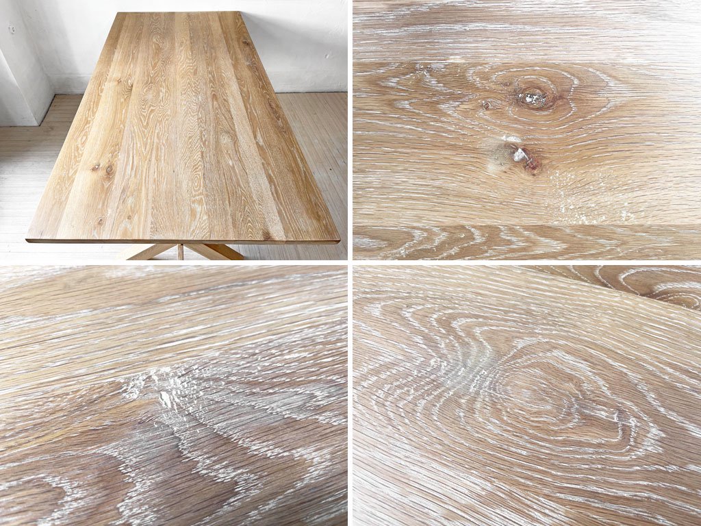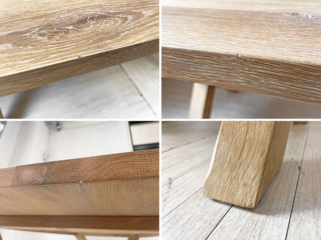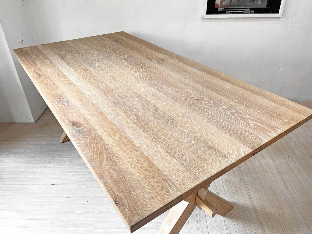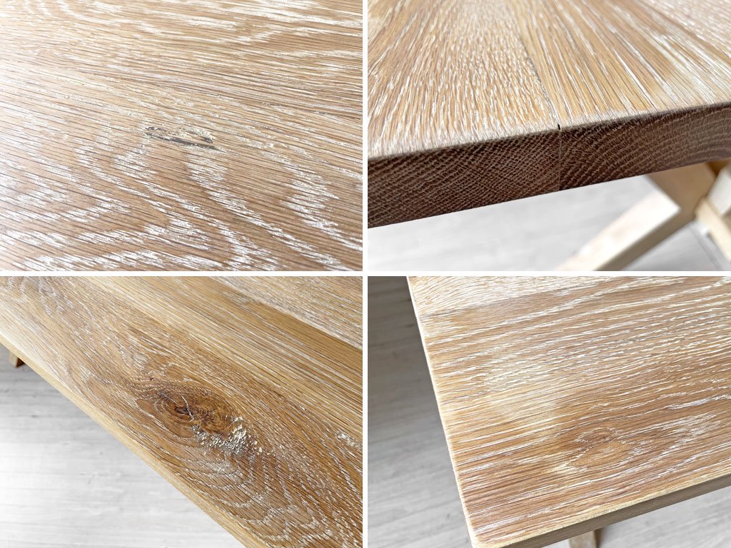 薄塗りのホワイトペイントが施されたテーブルは、オーク無垢材の杢目や木肌の質感を損なわず、上品で清潔感の仕上がりとなっています。