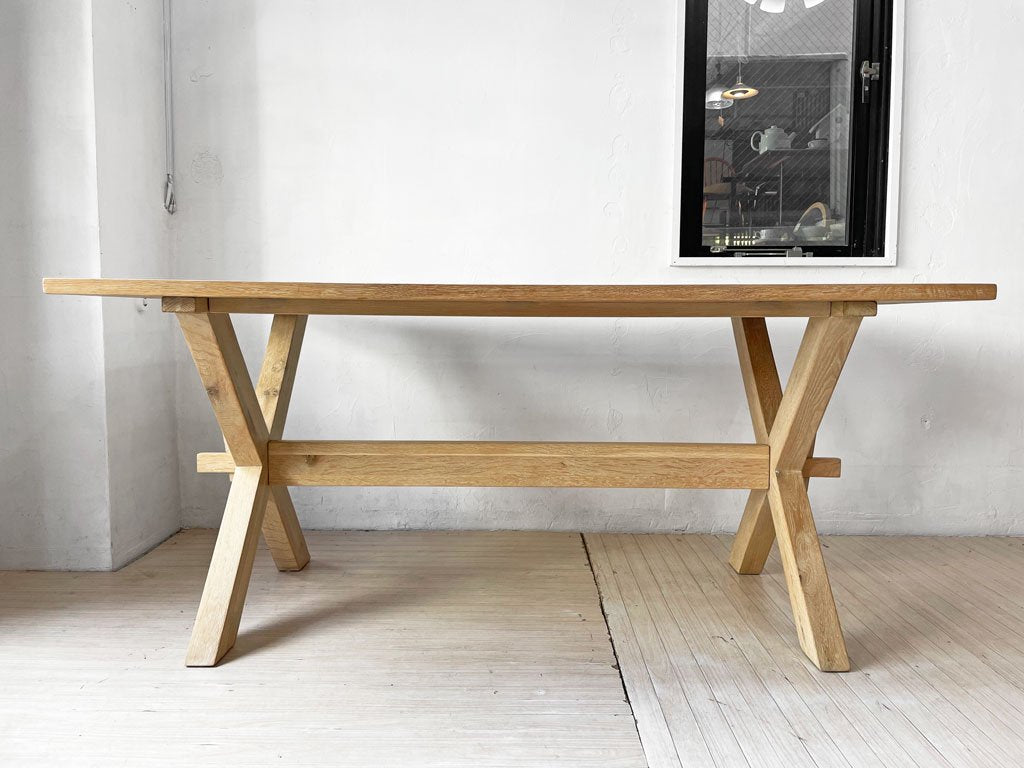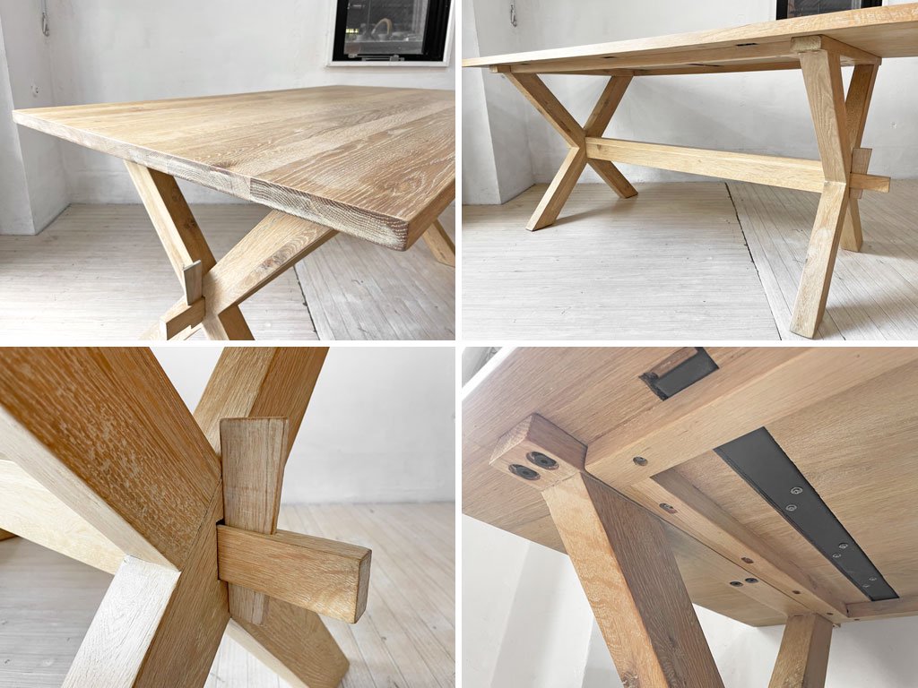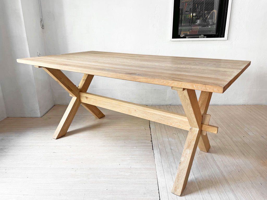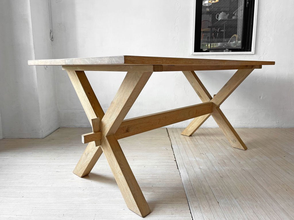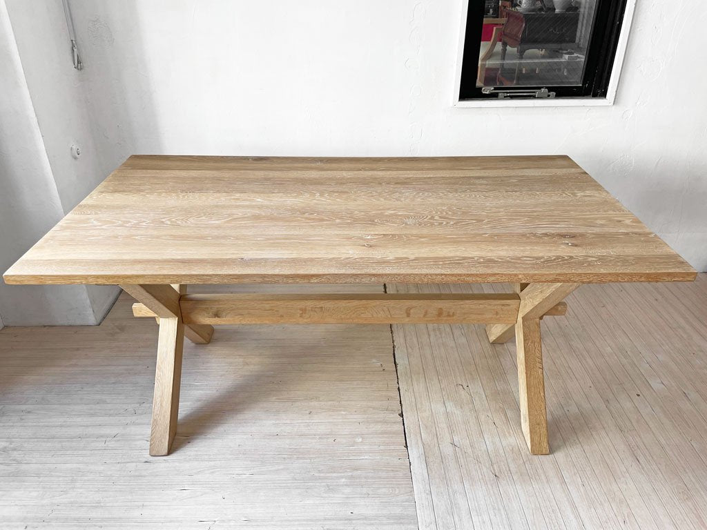 薄塗りのホワイトペイントが施されたテーブルは、オーク無垢材の杢目や木肌の質感を損なわず、上品で清潔感の仕上がりとなっています。