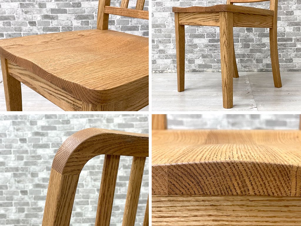 こちらは同社の人気プロダクト『 ベーシックチェア / BASIC CHAIR 』。その名のごとく、飽きの来ない素朴なフォルムにより、素材本来の心地よさが強調されたデザインとなっております。フレームには心地良い手触りのオイル仕上げのオーク無垢材を使用し、周りの木製家具やフローリングとも良く馴染んでくれる為、インテリアコーディネートに不安のある方でも安心してお使い頂けます。