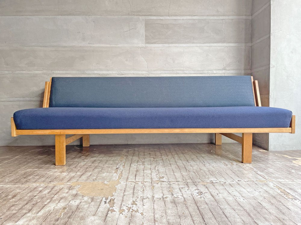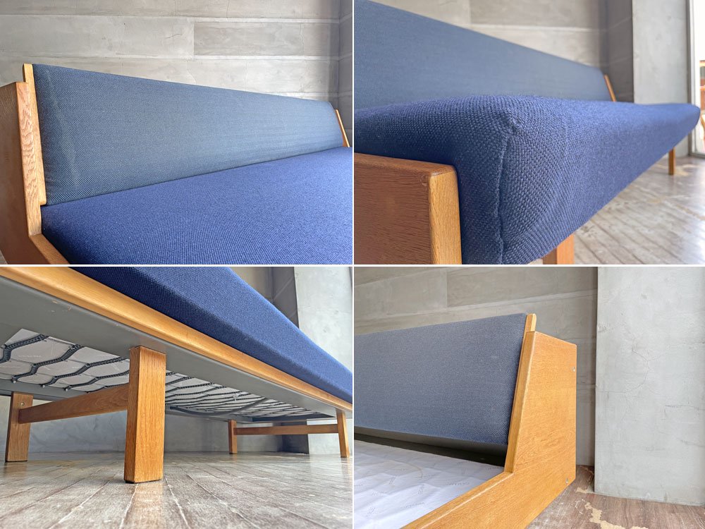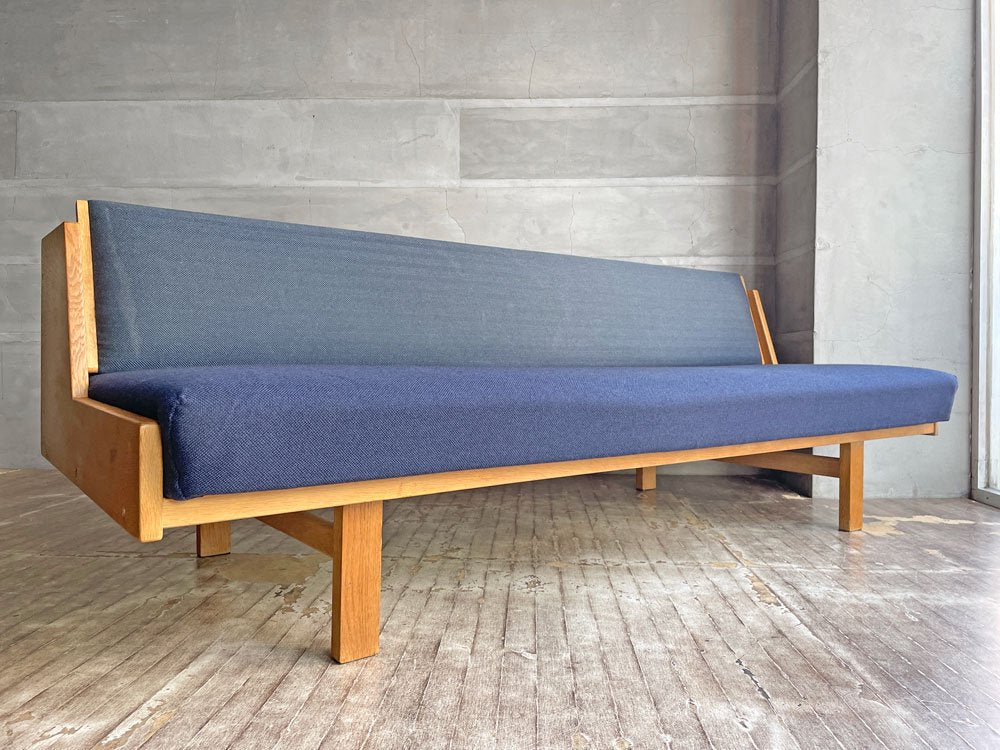ゲタマ GETAMA ビンテージ GE258 デイベッド オーク ブルー系ファブリック 角脚モデル ハンス・J・ウェグナー デンマーク 北欧家具 希少 ♪